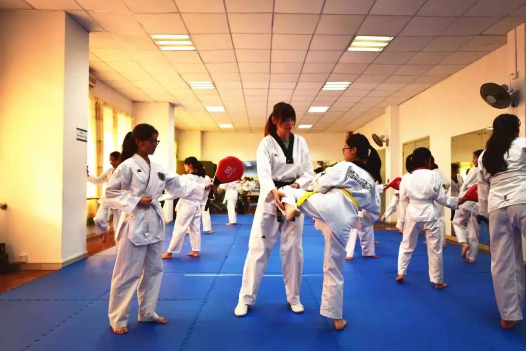 在跆拳道课程中,罗微一招一式教学生,示范专业动作,分享实战经验,还会将百折不挠的精神传递给学生。