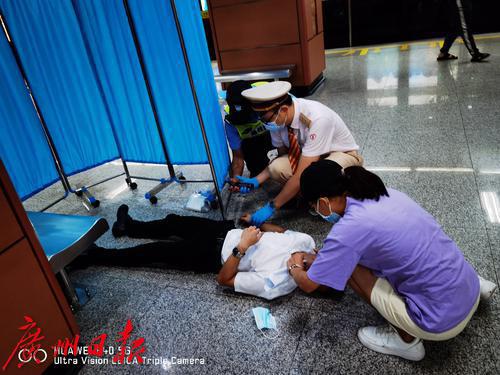 8月7日早上9:10,广佛线金融高新区站站台岗关兆鹏巡视站台时,发现站台中部有一名男乘客脸色苍白,神情痛苦。关兆鹏便上前询问是否需要帮助,男乘客难掩痛苦,用仅存的力气告知关兆鹏,他有过癫痫症的发病史,需要躺下来休息一会。关兆鹏立马搀扶住四肢无力的男乘客到旁边的凳子坐下。刚一坐下,男乘客就突然浑身抽搐,双手双脚硬硬地抖动起来,关兆鹏见状,护住男乘客四肢,让他平躺在地上,同时,将情况汇报给车控室,请求支援。接报后的行车值班员邓敏施马上通知其他岗位支援,同时播放广播尝试寻找专业医护人员的帮助。就在值班站长刘跃传和客值张昭宏带着药箱前往现场的途中,一位热心乘客王小姐跑了过来,向他们表明自己是医护人员,可以提供帮助。到达现场后,王小姐看到癫痫发作的男乘客马上上前救助。在王小姐的指引下,张昭宏拿来一叠A4纸卷起来,塞到男乘客嘴里顶住口腔,防止他咬舌头。随后,车站工作人员一起协助将男乘客转移到比较宽旷的地方,用衣物护住头部,以免他受到碰撞,并用屏风围挡,创造一个相对隐蔽的空间。王小姐全程陪同救助,帮忙擦拭和按压肩部。在众人的帮助下,男乘客抽搐慢慢平缓下来,意识也逐渐恢复。在120到达现场并经过简单检查后,男乘客表示从小就有这个病,休息一段时间后就能自行离开,不需要去医院。王小姐见男乘客已无碍,正准备默默离开,刘跃传为其拿来更换的新防护用品,并感谢她热心伸出援手,为其专业的救助点赞!
