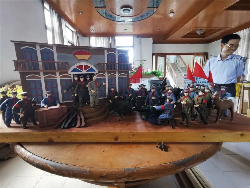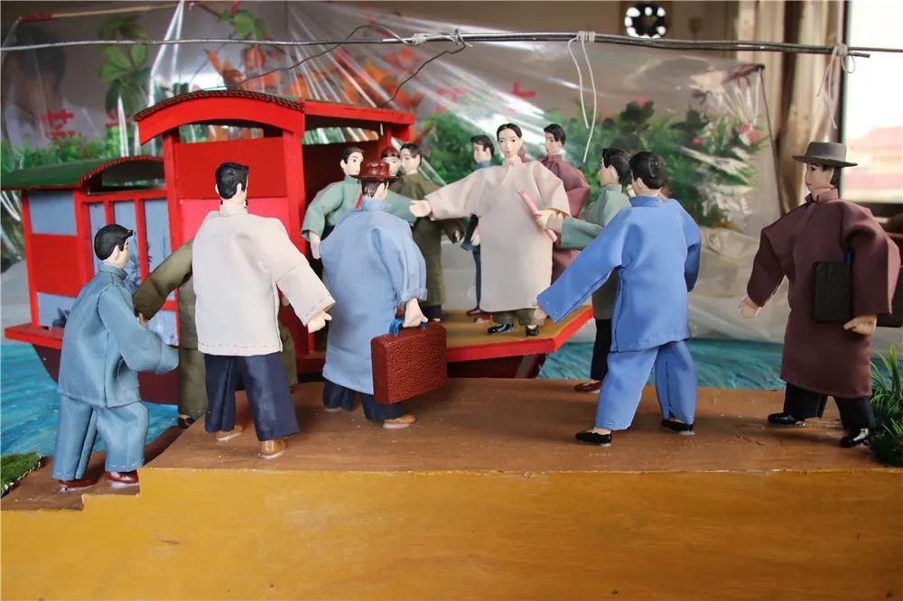 在三楼,记者看到了四个盖着塑料膜的大型乞巧作品,凌广聪告诉记者,恰逢今年是建党100周年,他们决定创作一系列党史题材的红色乞巧作品。中国共产党第一次全国代表大会、秋收起义、南昌起义、以及古田会议四个场景都活灵活现,生动诠释了中国共产党为中华民族谋复兴的奋斗历史和光辉历程。