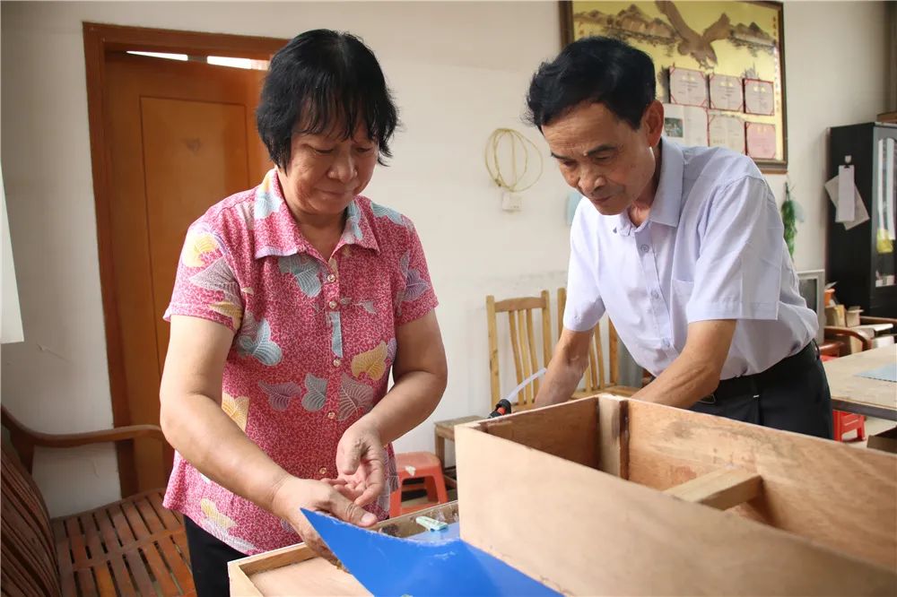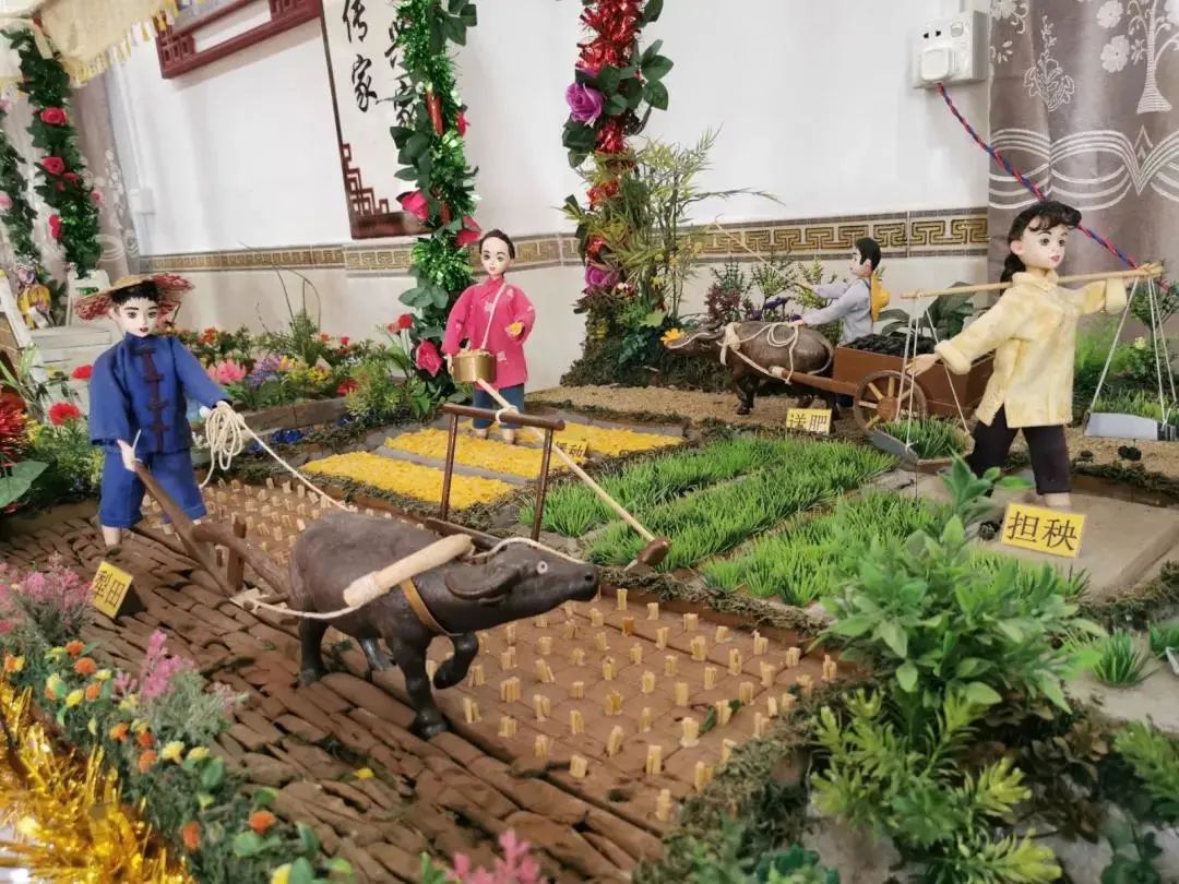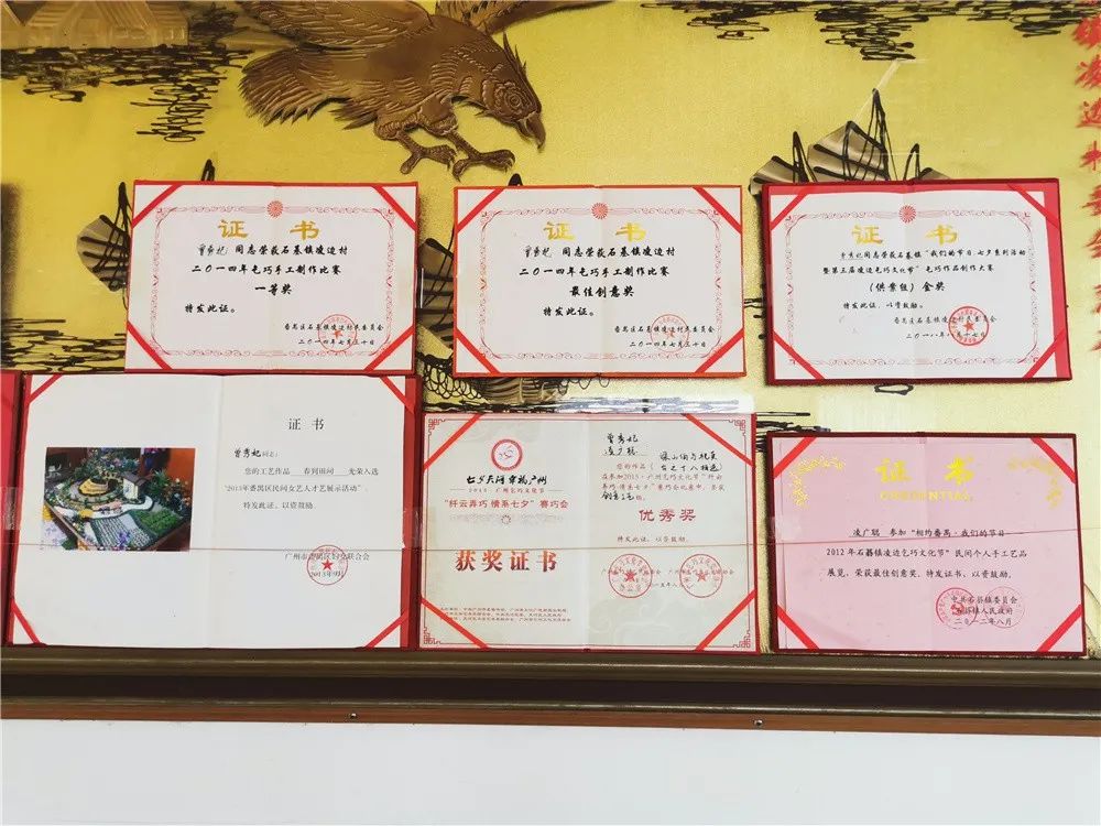 2012年,他们夫妻共同创作的《勤耕不辍稻谷香》作品,就会模拟出从耕田、车水到插秧打谷的劳动过程,并附有声音和灯光,生动有趣。当年,此作品在凌边村举办的乞巧作品评比大赛中荣获多个一等奖,此后他们两夫妻的作品逐渐打开了知名度。