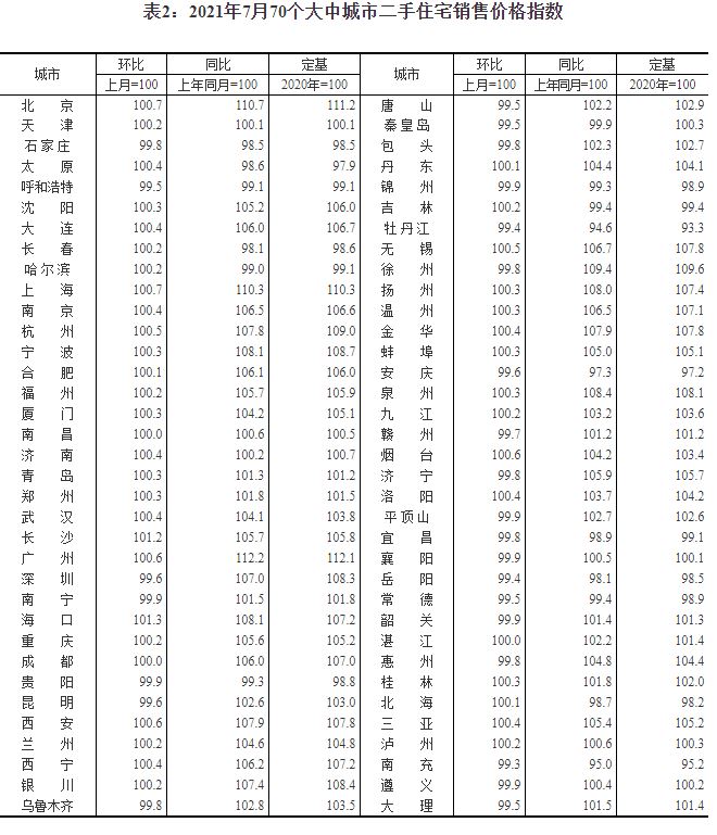 7月份,一线城市新建商品住宅和二手住宅销售价格同比分别上涨6.0%和10.0%,涨幅比6月分别回落0.1和0.5个百分点。二线城市新建商品住宅销售价格同比上涨4.7%,涨幅比6月回落0.1个百分点;二手住宅销售价格同比上涨3.5%,涨幅与6月相同。三线城市新建商品住宅和二手住宅销售价格同比分别上涨3.3%和2.3%,涨幅比6月分别回落0.4和0.3个百分点。