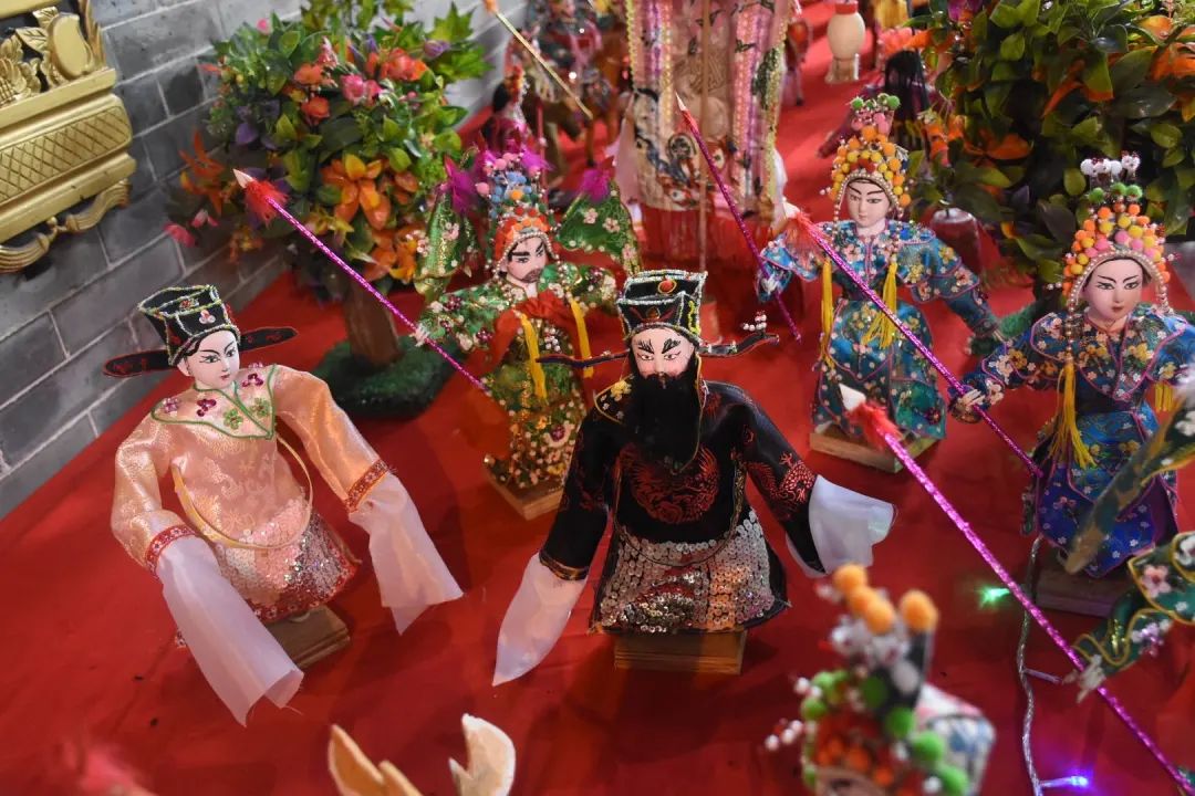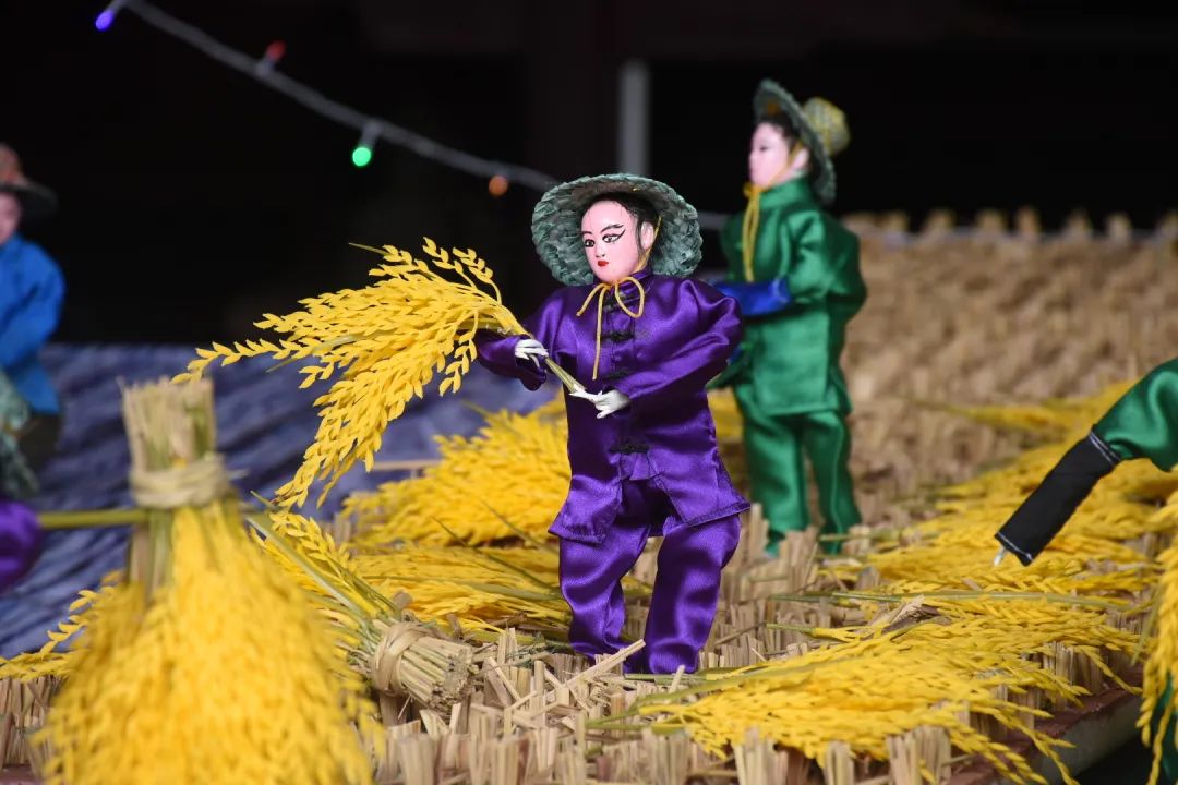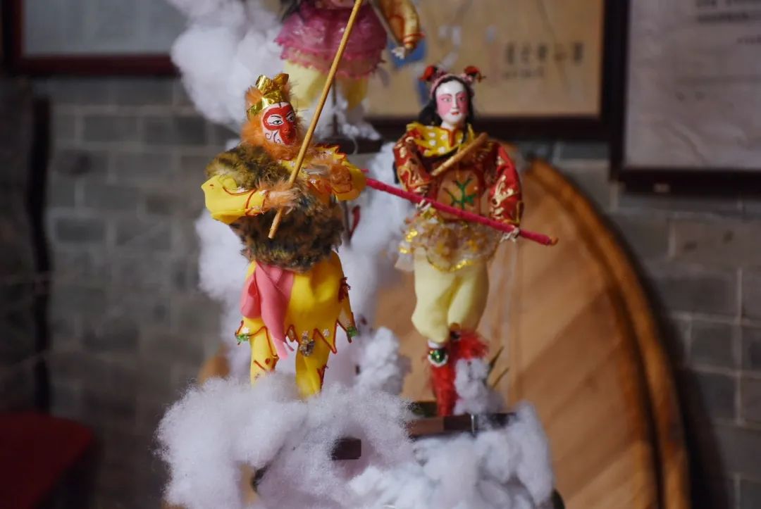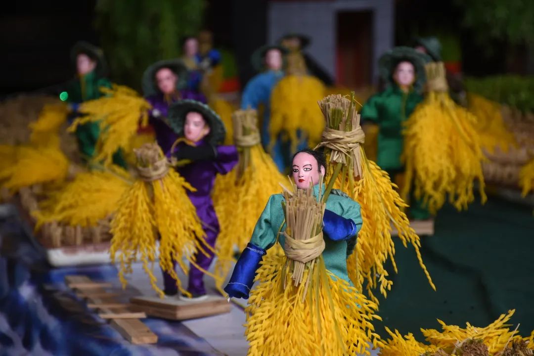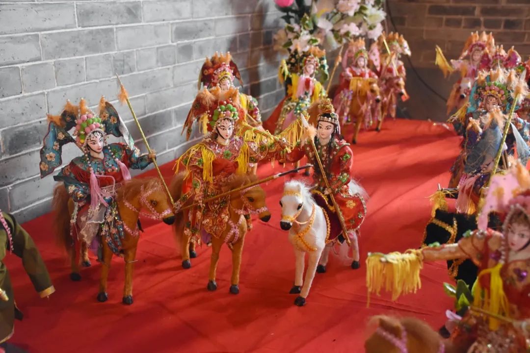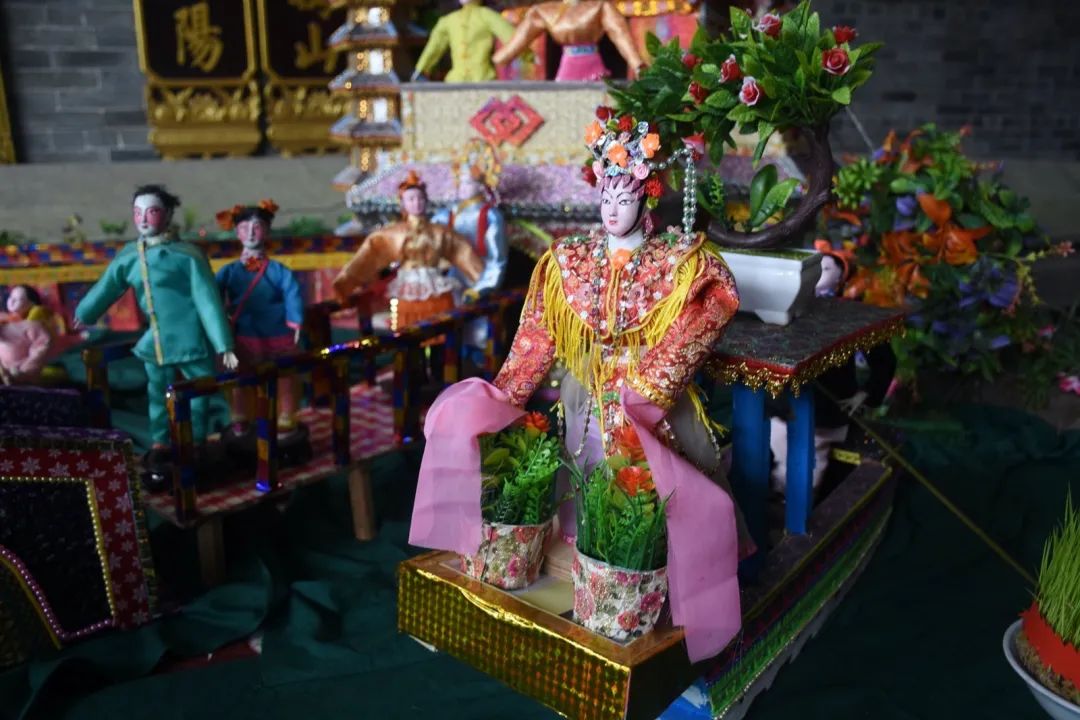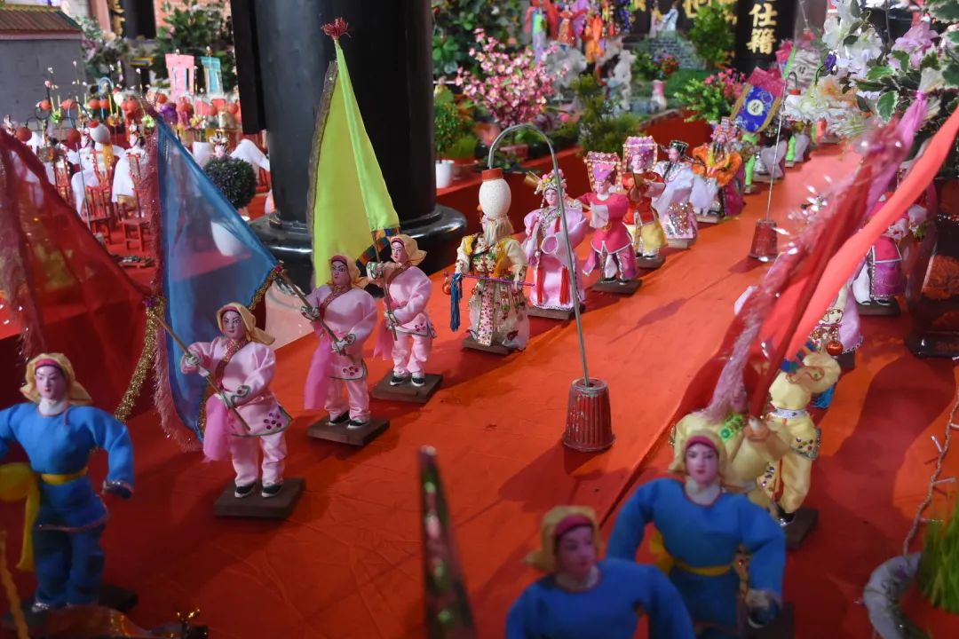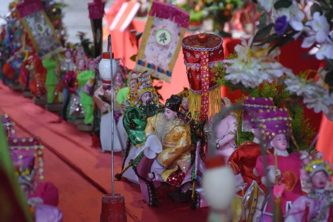 乞巧贡案《六国大封相》在之前展出过,但今年全部重新制作,作品比之前更加精致。50多个乞巧公仔两边排开,依序行进,场面很是壮观,每个公仔神态各异,极具观赏性。乞巧节是以“牛郎织女”的民间传说为载体的传统节日,每年必有相关故事的作品,也是现场最为经典的场景,今年也重新创作。