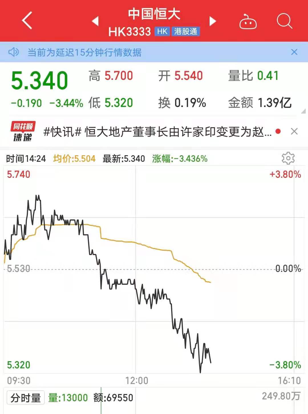资本市场,截至记者发稿,港股恒大系持续下探,恒大汽车跌4.51%,恒大物业跌4.27%,中国恒大跌3.44%。