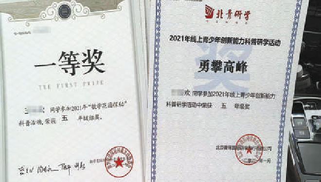 为了“美化”小升初简历,部分家长不惜造假,部分培训机构也提供模板和代写服务。“大师赛的金奖银奖难度很大,但铜奖基本参赛就有。为在铜奖段分出差距,后来外界又将铜奖分为高分铜和低分铜。”黄庄某培训机构的胡老师告诉记者,家长不妨直接将孩子简历写成“××年获得高分铜奖”,“您写简历的目的是为了让学校一眼看中孩子,不管写什么,达到目的就成。写个高分铜,学校一般不会核对,但涉及金银奖学校一定会调出底分复查。”