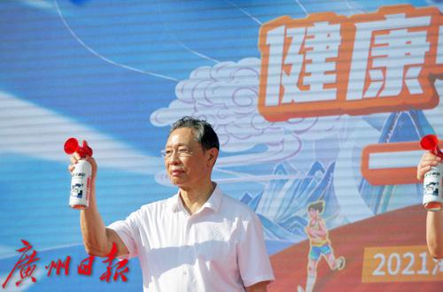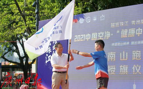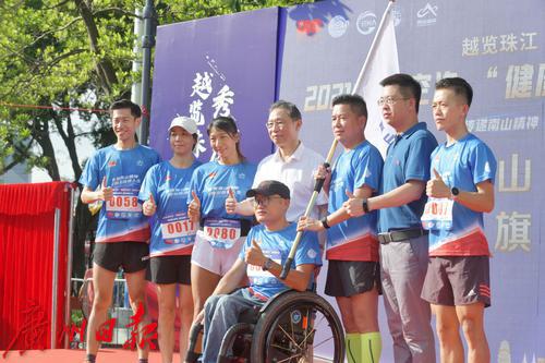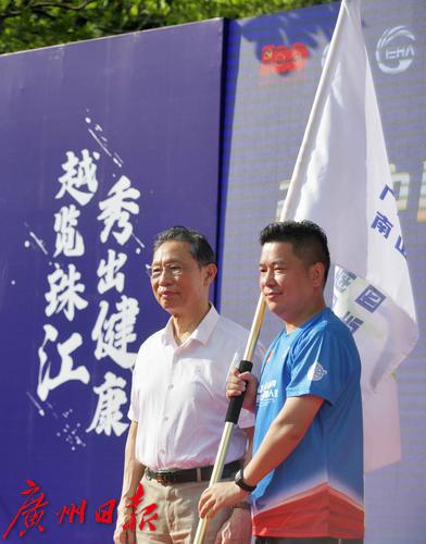 记者17日来到越秀区大沙头码头看见,虽然天气炎热,但众多跑步爱好者早已跃跃欲试,做好热身活动。钟南山院士亲自为南山跑团授旗。