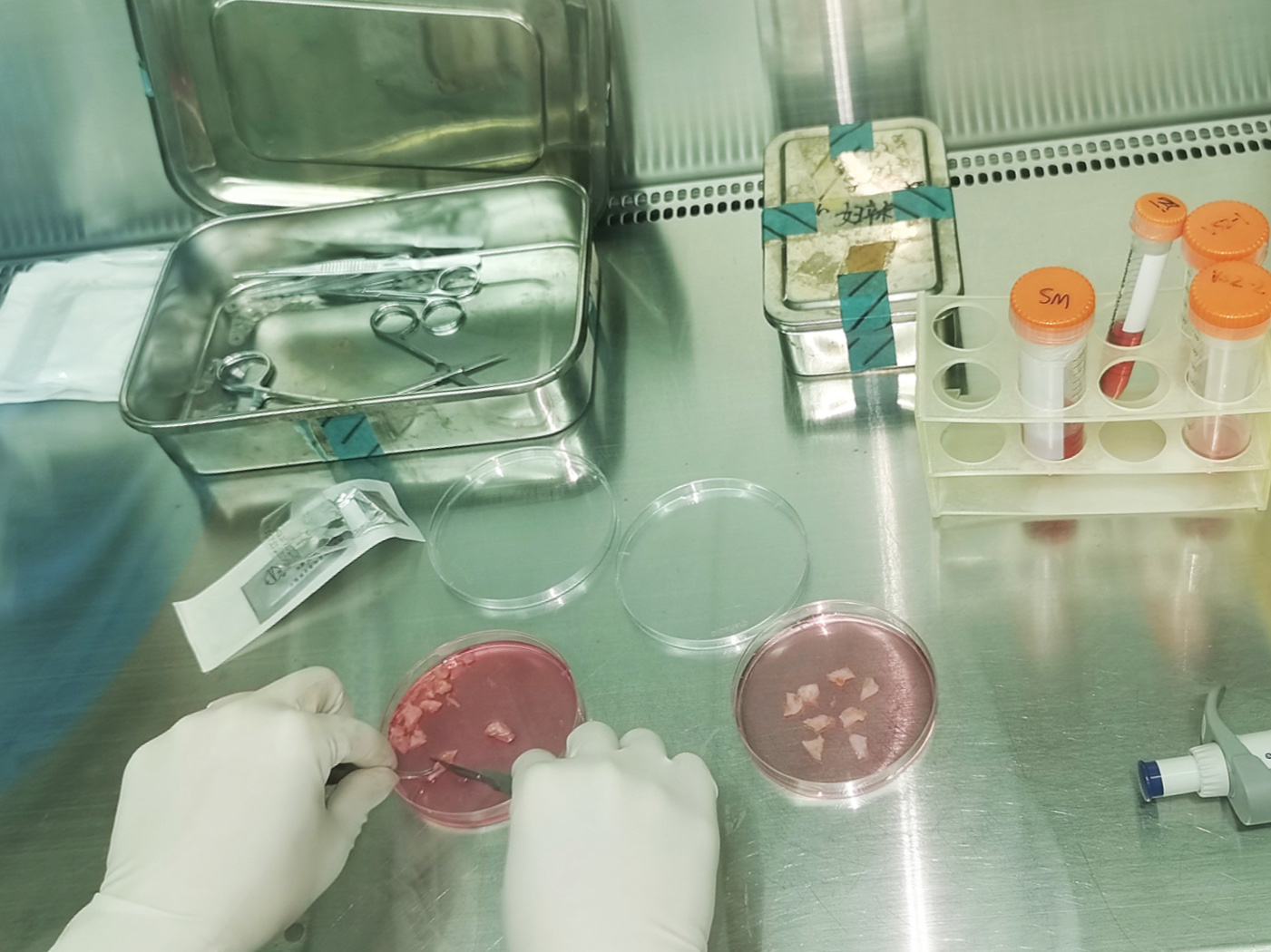 北大深圳医院生殖保存中心工作人员将取下的部分卵巢组织在实验室进行冻存