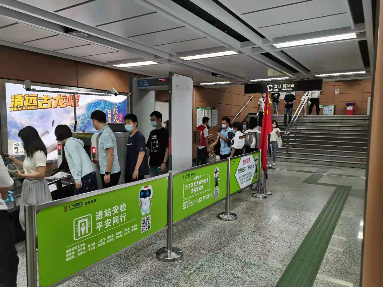 同时,为了做好防疫提醒,志愿者和安检人员靠前服务,提前指引乘客“亮码”,以便快速进入地铁进行安检。