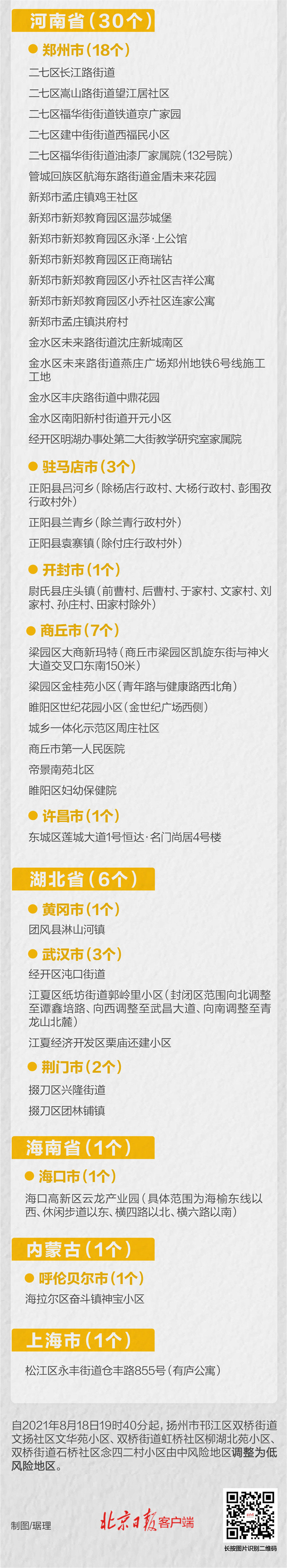 经扬州市新冠肺炎疫情防控工作指挥部研究,自发布之日起,对扬州市部分区域疫情风险等级进行调整: