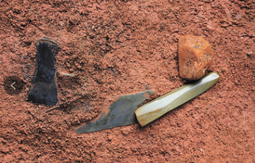 M7号墓砚石等遗物出土情景。