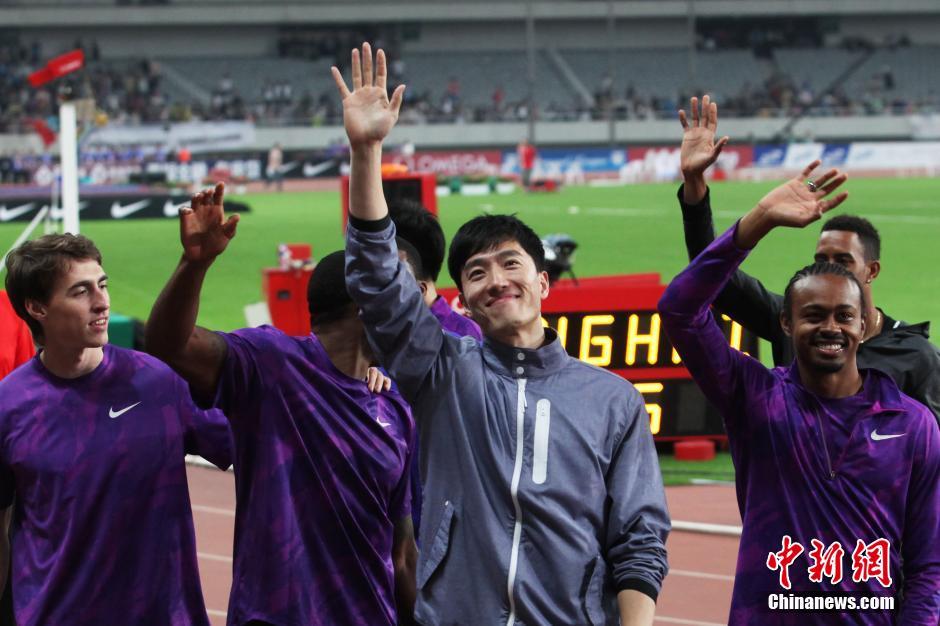 资料图:5月17日晚,2015国际田联钻石联赛—上海站在上海体育场打响,“中国飞人”刘翔现身八万人体育场,举行简短仪式,并绕场一周,告别自己最心爱的运动。中新社发 张亨伟 摄