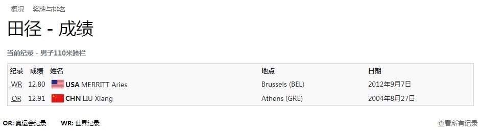 2012年,在世界男子110米栏中排名中,刘翔时隔5年重新回到榜首。