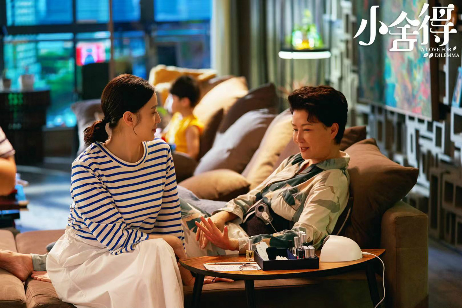 《小舍得》中蒋欣饰演的田雨岚与宋佳饰演的南俪是重组家庭的继姐妹,由于上一辈的恩怨两人关系欠佳,却仍需要参加父亲南建龙举办的家宴。田雨岚对儿子奉行虎妈式的“鸡娃”教育,在家宴中也时时炫耀儿子颜子悠的成绩,孩子的教育问题终于成为南家新的矛盾点。
