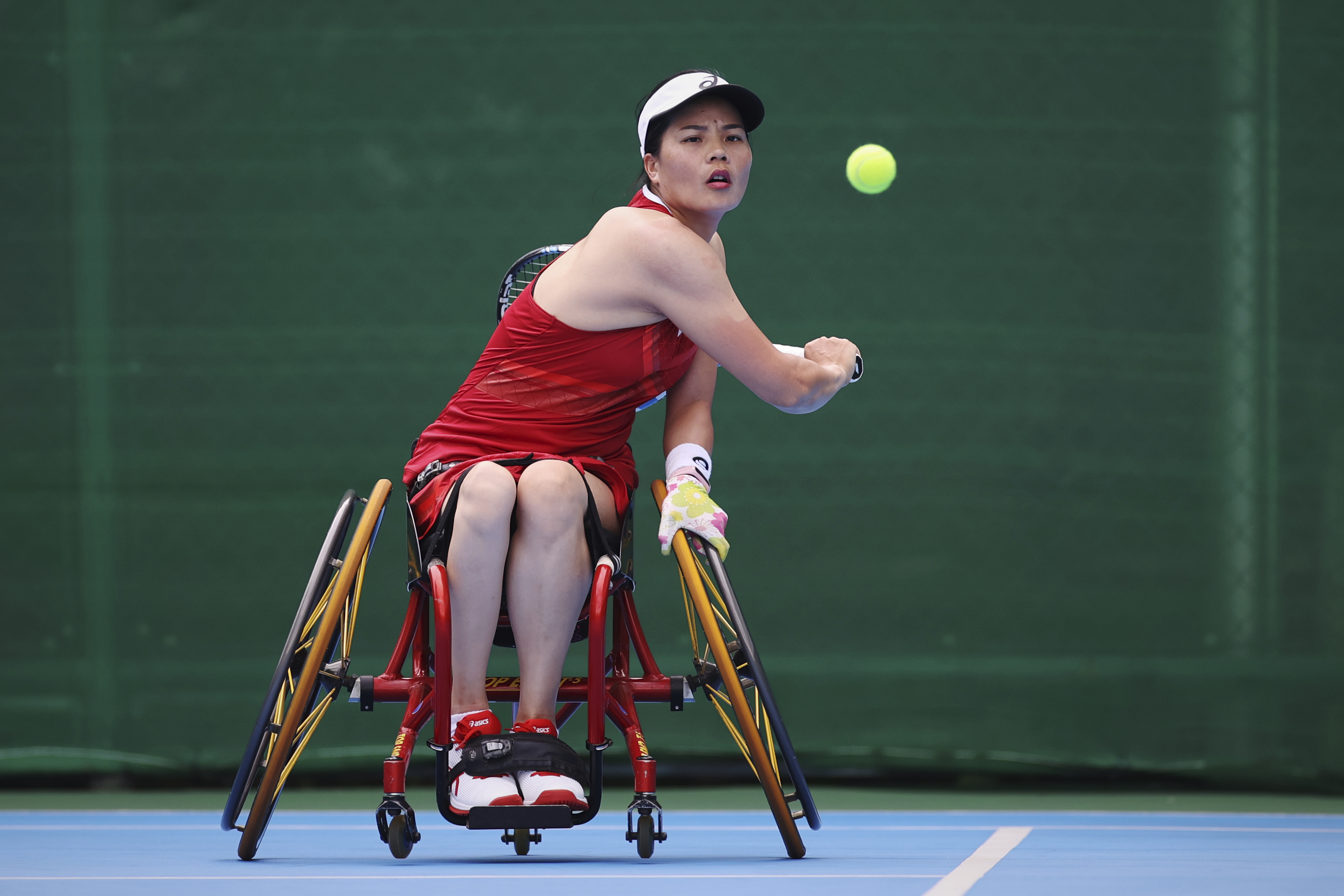 19岁那年,黄金链才开始接触轮椅网球。曾经以为与运动绝缘的她,没想到,这场网球一打就是13年。