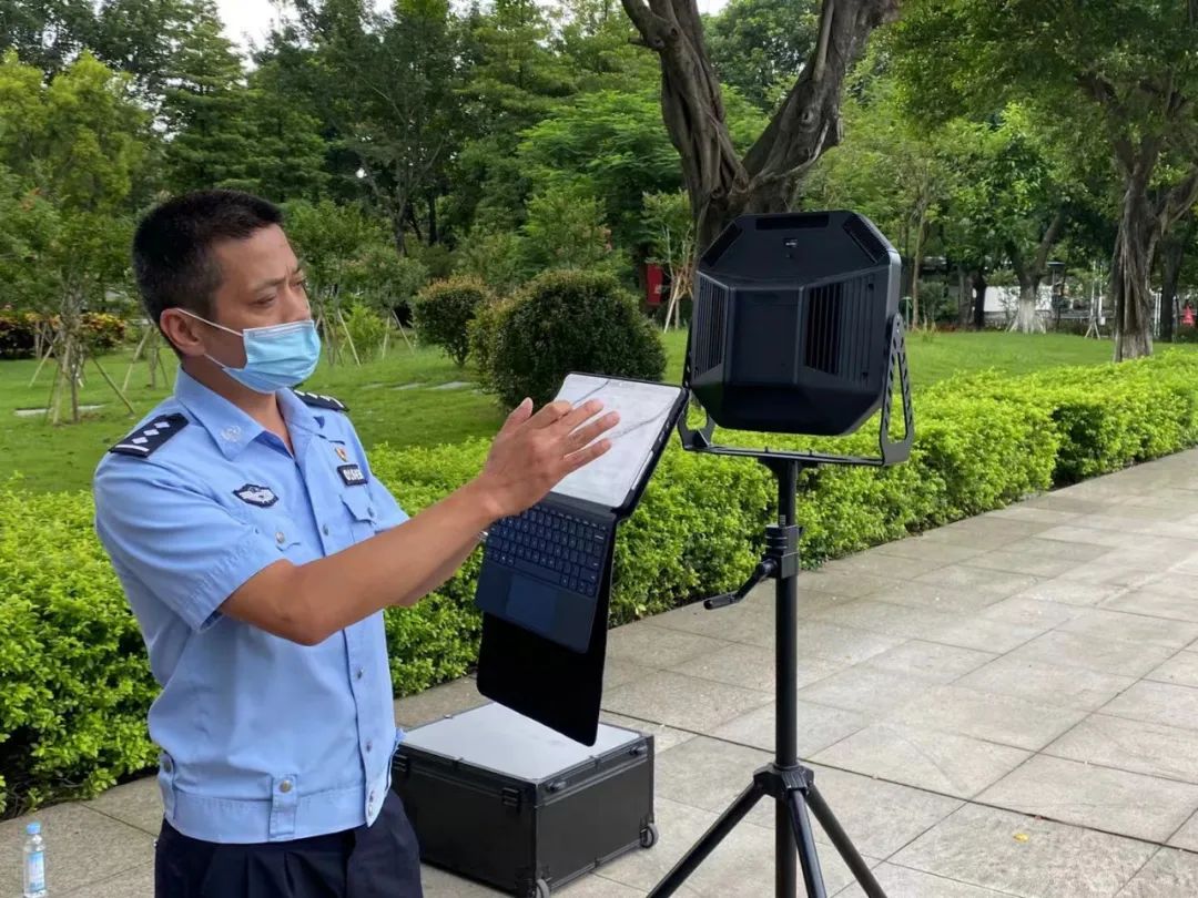 在发布会上,广州市公安局交通警察支队越秀大队胡警官现场演示如何通过便携式鸣笛识别设备实时采集途经车辆乱鸣笛信息。
