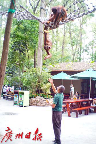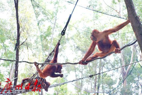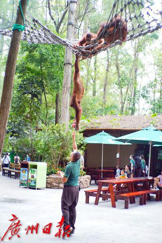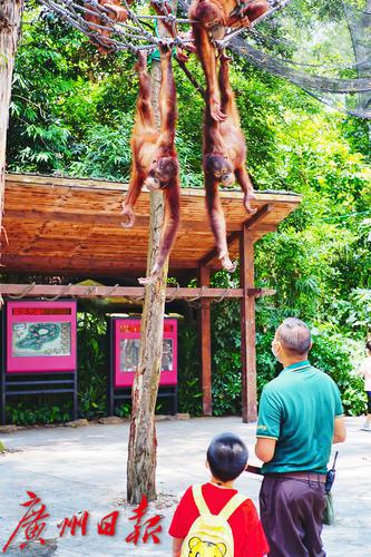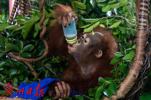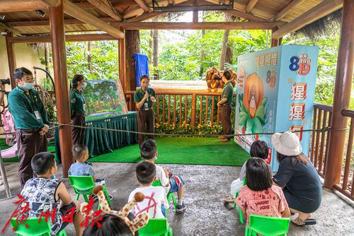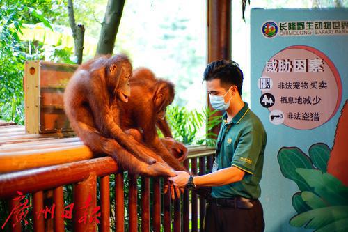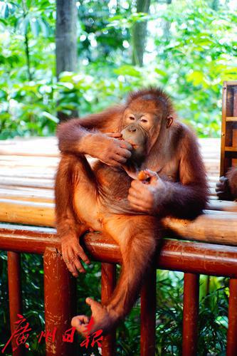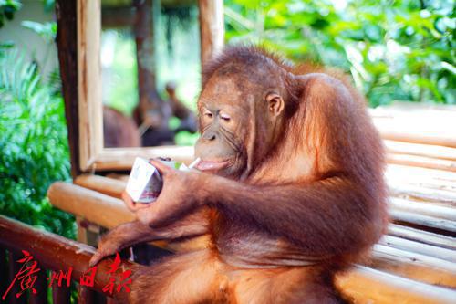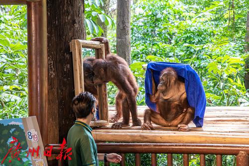 8月19日是国际红毛猩猩日。在这一天,广州长隆野生动物世界红毛猩猩家族的小明星-“六毛”“九毛”作为课堂小助教,和保育员一起为小朋友们上了一堂关于红毛猩猩的科普课。科普课上,有“丛林智者”之称的红毛猩猩凭借着聪明才智和一身本领,玩起了智力迷宫游戏,还用吸管喝奶。记者发现,红毛猩猩不仅聪明,还很“贪靓”,“九毛”爱照镜子,对着镜子里的自己左看右看,似乎在说“我最好看”。在国际红毛猩猩日这一天,生动有趣的动物科普课堂通过让游客在游玩中了解红毛猩猩们的习性特征、生存环境和野外保护面临的困境的方式,呼吁大众关注红毛猩猩的保护并在力所能及的范围里贡献自己的一份力量。长隆野生动物世界保育专家陈思明透露,红毛猩猩们的智商很高,拥有一身本领。果然,红毛猩猩现场还玩起了迷宫游戏来,保育员将食物放在迷宫的底层,红毛猩猩竟能想到办法用一根小木棍,将食物沿着迷宫搬运到出口,顺利取得食物,现场见证的小朋友们纷纷感叹“红毛猩猩好聪明啊”!通过红毛猩猩手脚和人类的现场对比,保育员们还为小朋友们讲述了红毛猩猩“手也是脚,手也是手,脚也是手,脚也是脚”的冷知识,原来是因为红毛猩猩的手和脚都拥有对生拇指,这样的构造方便它们抓握,所以无论是吃东西还是在树间荡越,都可以十分灵活。保育员介绍,作为猩猩科里唯一分布在亚洲的属,红毛猩猩生活在苏门答腊和婆罗洲的热带雨林,但是近年来生存环境不容乐观,矫健灵活的红毛猩猩已被列为“极危”物种,加之野外红毛猩猩繁殖率非常低,若不加强重视保护红毛猩猩种群,这一物种可能会多年后在野外灭绝。陈思明介绍,截至2021年,长隆共保育有24只红毛猩猩,是国内最大的红毛猩猩种群。记者了解到,长隆红毛猩猩家族的成员中的“三毛”是个大明星,曾经出演《爸爸去哪儿》大电影。如今,“毛氏”家族已是三代同堂,今年还迎来了新生宝宝“十三毛”,还有几只猩猩宝贝正在孕育中。