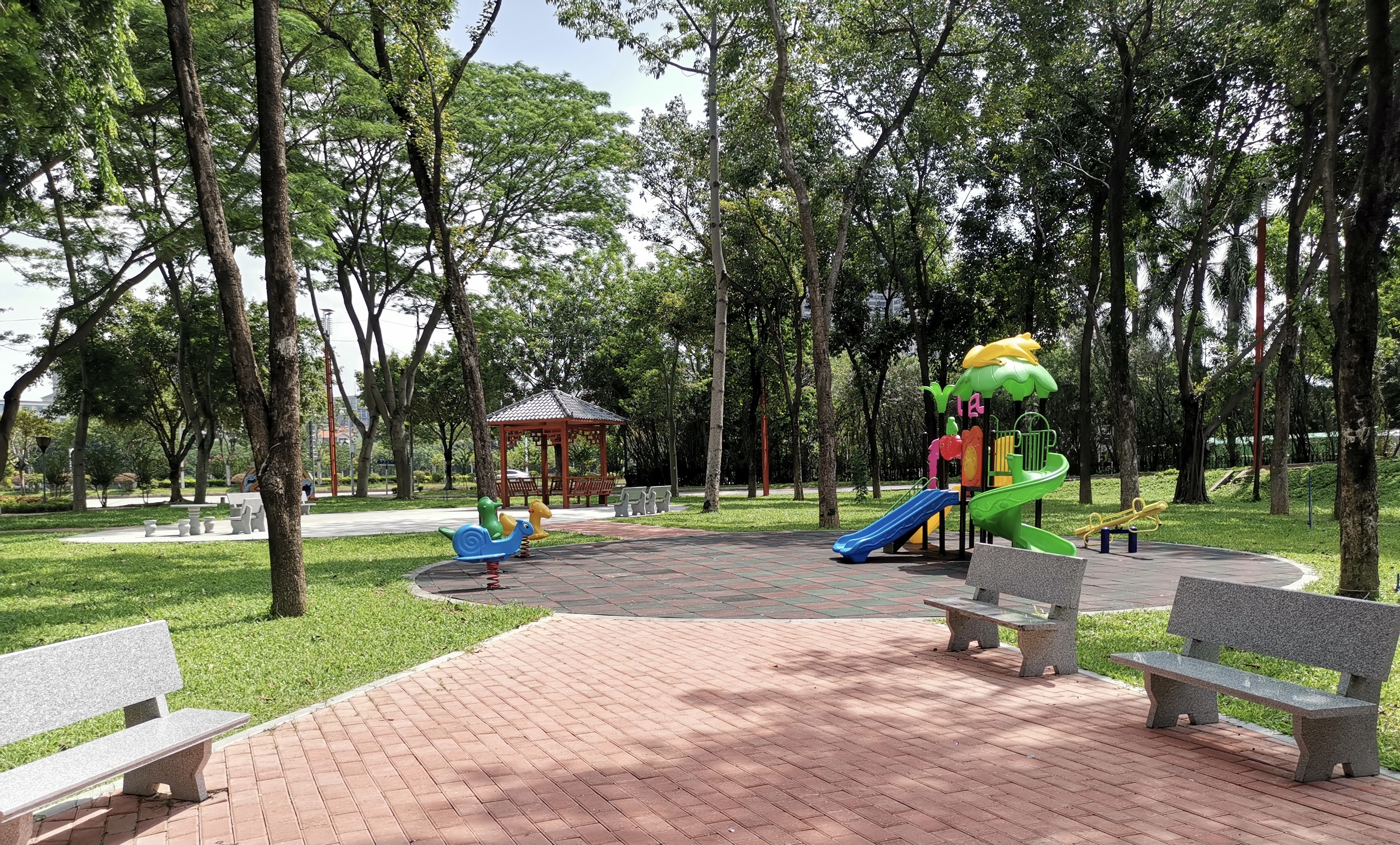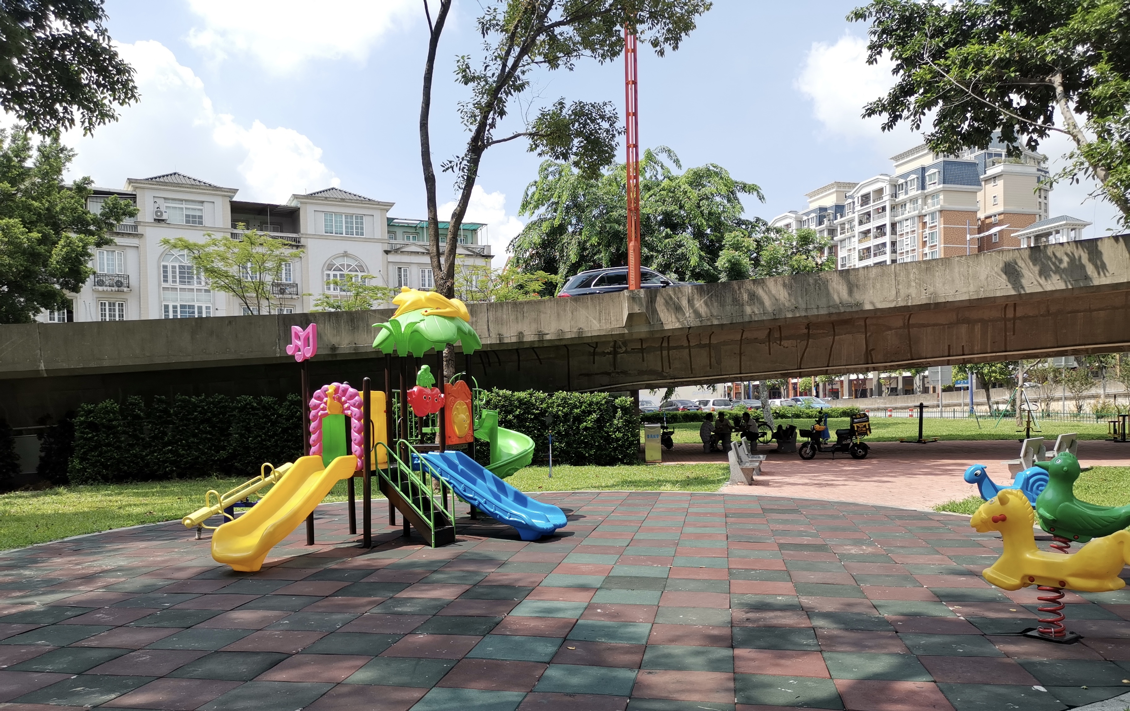 “别看它是桥底的一个小公园,里面的娱乐设施和健身器材却应有尽有。我经常带小孩过来这里玩,环境又好,离家也近,推个儿童车就过来了。”住在附近的张阿姨高兴地向记者介绍。离家门口10分钟就有这么有趣的小公园,别说孩子喜欢,就连大人也舍不得走。