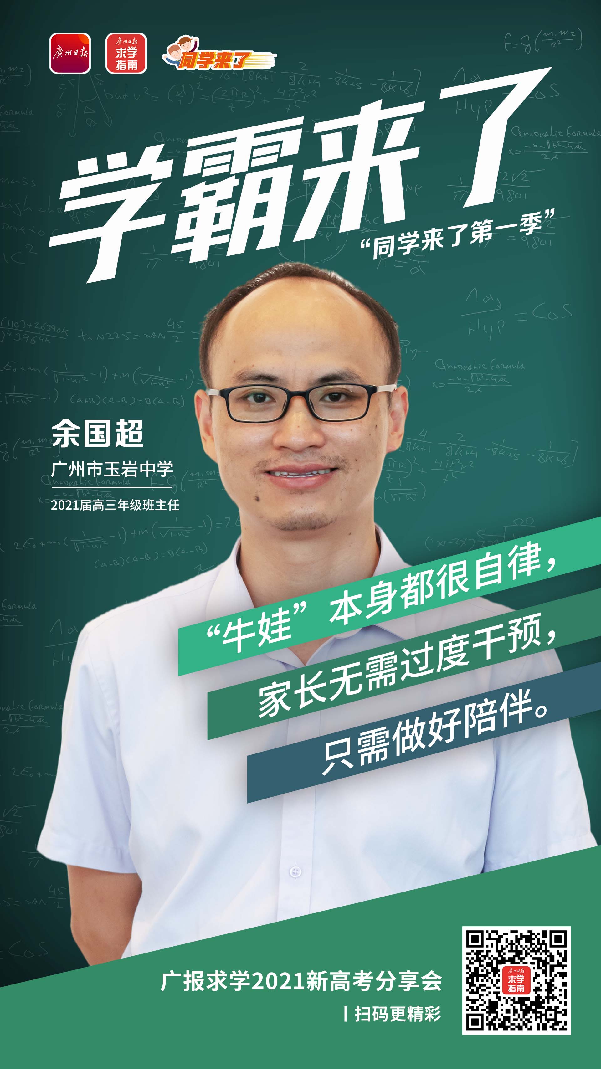 广州市南武中学2021届高三年级级长詹美龙老师说,要辩证地看待“鸡娃”现象。“违背孩子的意愿、违背孩子成长规律的‘鸡娃’方式我不赞成。”他认为,父母应该既是“后勤部长”,又是“奖励部长”,要适时给孩子奖励、引导。詹美龙老师表示,只要是孩子想做的事情,他都会大力支持。