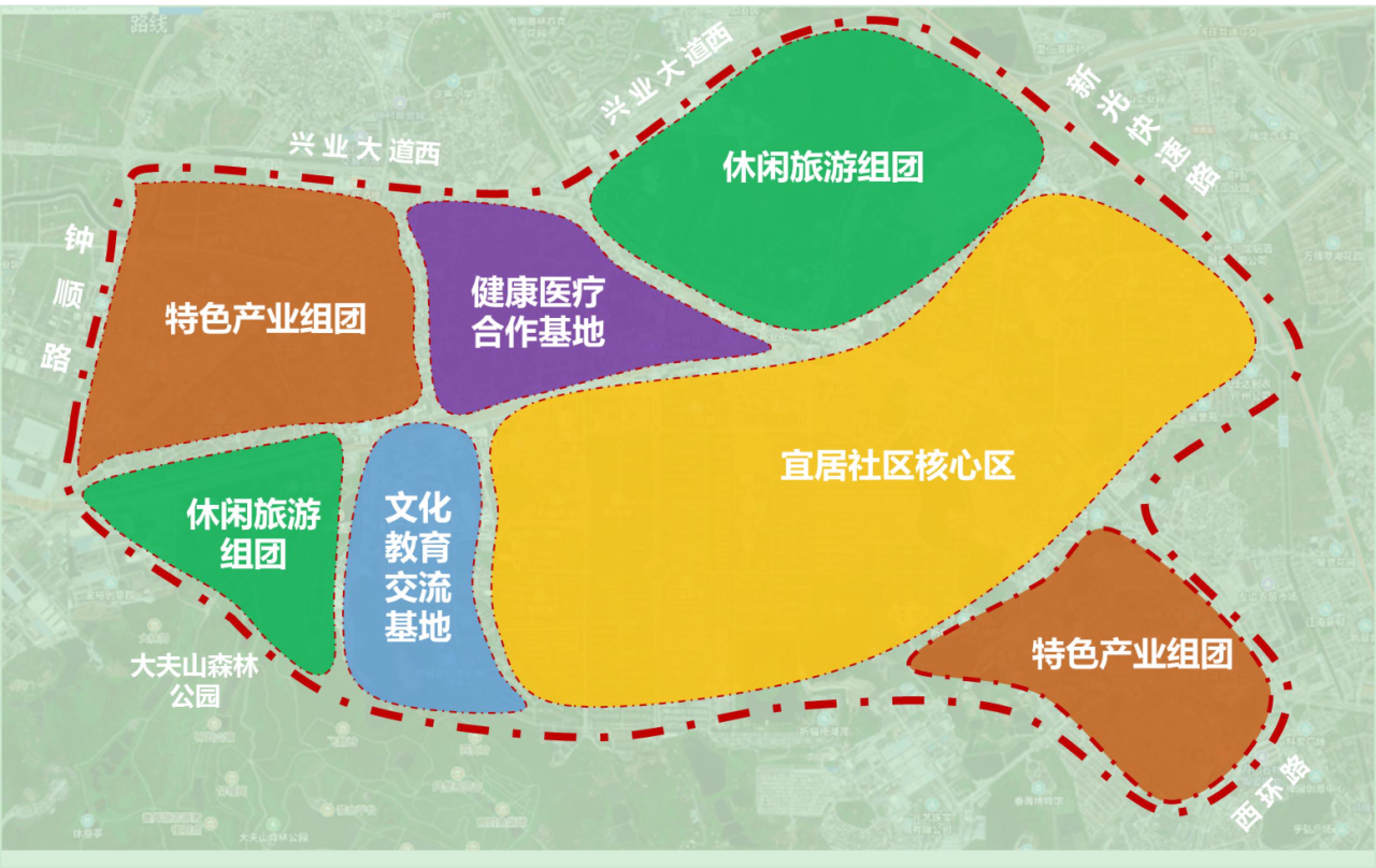 以祈福新邨、富豪山莊、錦繡生態園等成熟宜居小區、祈福-雄峰城商圈為主要載體,對標港澳和國際標準,以提升生活便利度、深化社會治理為抓手,突出建設綠化景觀與人文居住相結合的特點,持續優化人居環境,打造形成和諧、綠色、宜居的國際一流社區。
