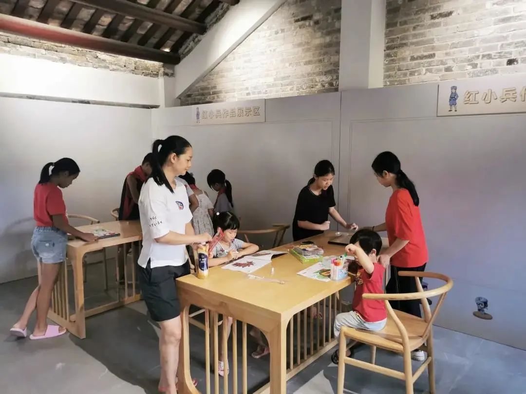 除了游玩,孩子们还可以参观“中国革命发展史”展示,记下我国革命史发展的知识点;或者在“守正创新,培根铸魂”主题书屋学习,劳逸结合;也可在“小兵艺术体验馆”体验绘画,这里有更多的亲子互动。