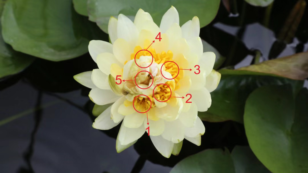 国际莲属品种登录负责人、中国科学院上海辰山植物科学研究中心研究员、博士生导师田代科表示,根据观看高清图片和视频,此株五芯莲奇观的组成是周围四个完整花芯环绕中心一个花芯,即同茎又同花,十分特殊和罕见,堪称全球首例。