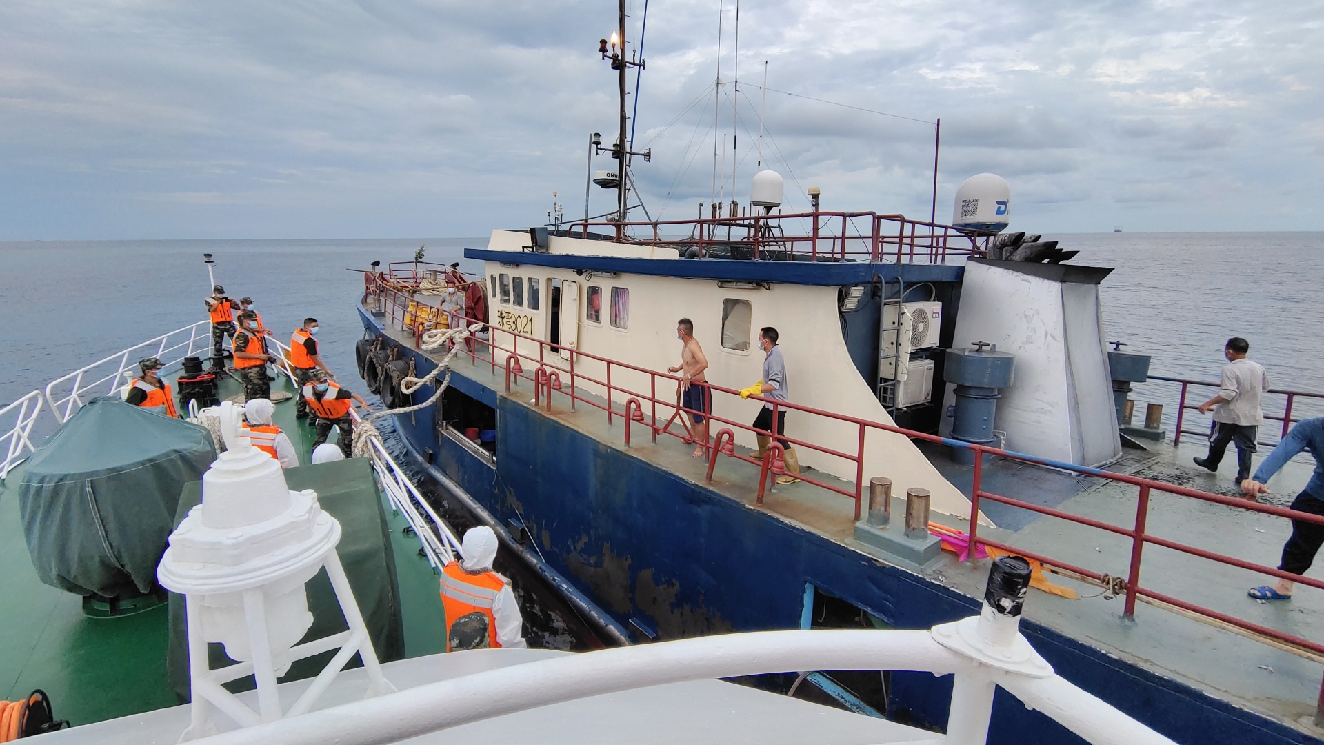 记者从广东海警局获悉,8月18日15时10分,广东汕头海警局接到报警称:在汕头海门港对开76海里处海域,一艘船号为“珠湾3021”的渔船上有一名渔员突然晕倒,出现身体抽搐和呼吸困难状况,情况十分危急,请求救援。