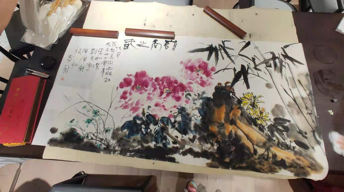 楠枫书院一角,竹影扶疏,日光西斜。郭莽园、梁如洁、赵利平、张弘、孙戈、区广安、刘思东等多位来自艺术界、文化界、评论界的专家、学者齐聚一堂,泼墨挥毫,画成一幅《岭南之春》。