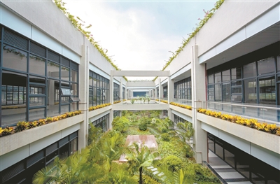除了绿化工程,2017年起,状元谷对建筑进行局部绿色低碳改造,采用绿色建筑设计,充分考虑生态、采光、通风、能耗、舒适度,通过创造性的结构和功能设计节省资源和减少环境影响。