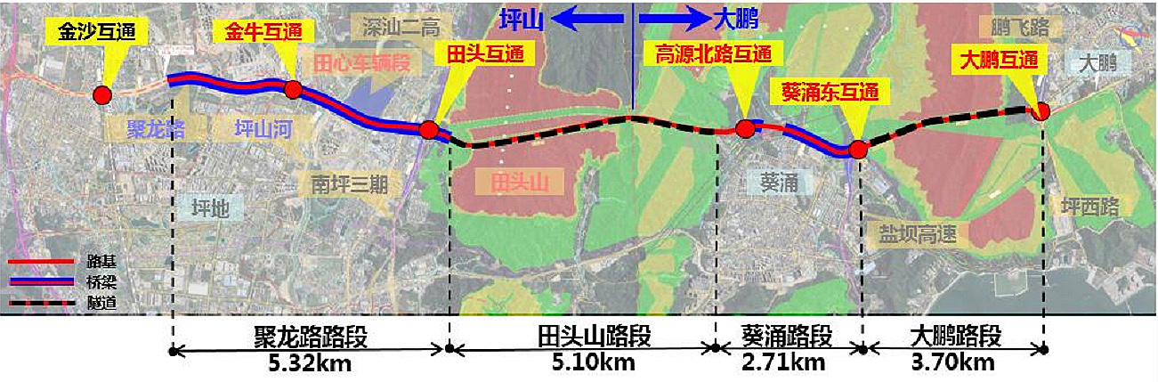 项目于2020年7月完成方案设计编制,大鹏新区主要领导多次听取项目方案汇报,组织研究新区段线位优化工作,积极推动大鹏新区段线位调整及纳入主线段同步实施。2021年8月19日,项目建设方案经市交通基础设施项目指挥部审议原则通过,接下来将提请市政府常务会审定,项目实施进入快车道。