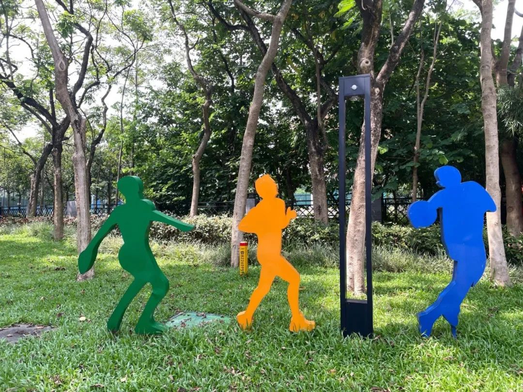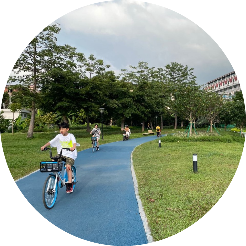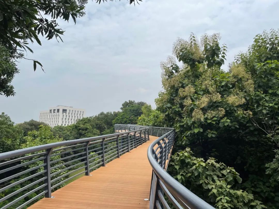 体育公园位于科学城中心区,傍山而建,毗邻牛角岭公园与尖塔山公园。体育公园以人为本,将体育精神融入自然环境,在保护山体的同时,依山就势,建设自行车道,登山步道,康体园等供游客锻炼、休憩娱乐,同时通过简洁的植物标识,寓科普知识宣传教育于休闲运动之中。