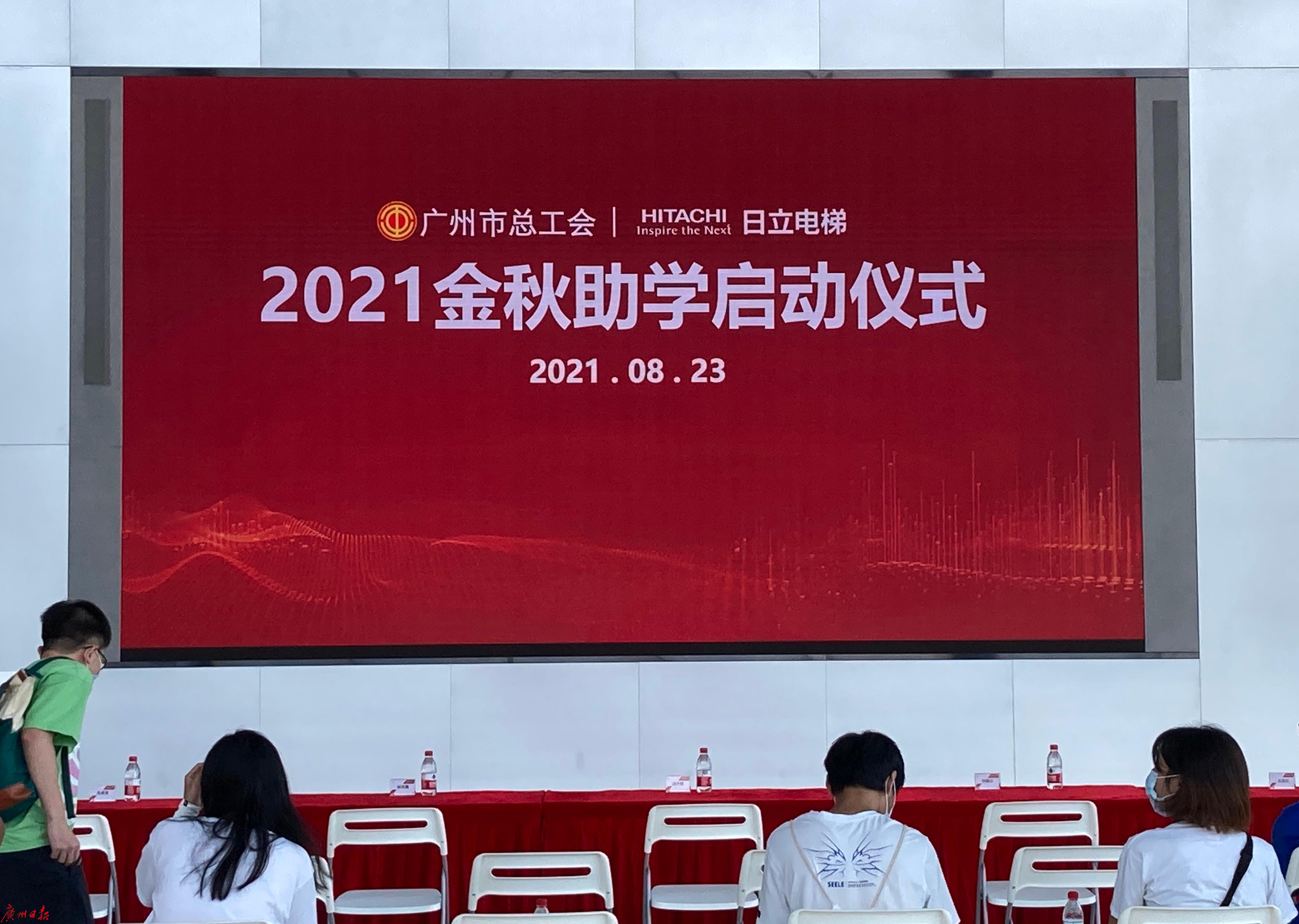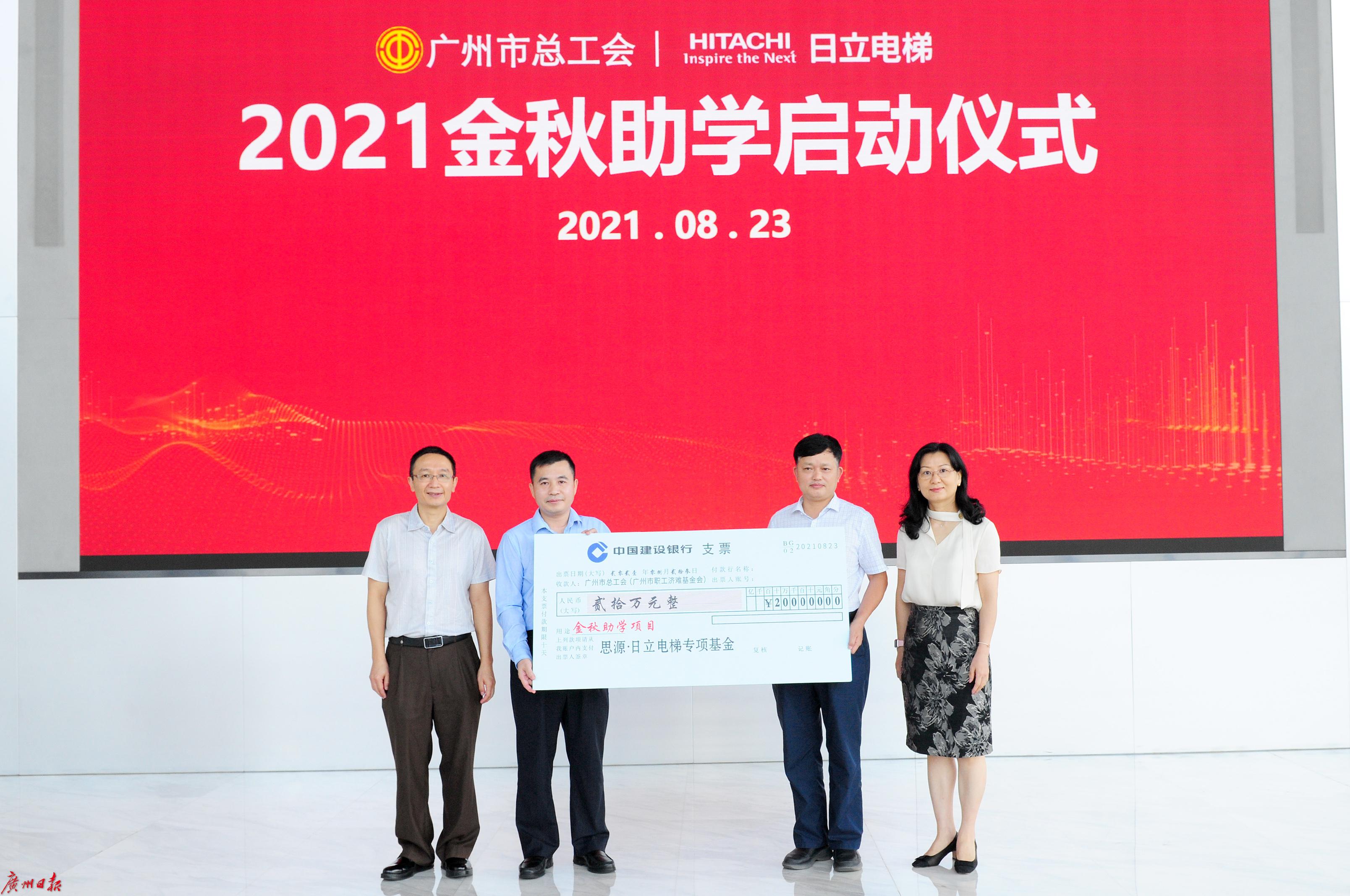 为进一步巩固城市困难职工解困脱困成果,帮助低收入困难职工子女顺利完成学业,今日(8月23日),由广州市总工会主办的广州市困难职工子女“金秋助学”活动在日立电梯(中国)有限公司高新科技产业园举行,活动现场为40名困难职工家庭的大学生捐赠20万元助学金。