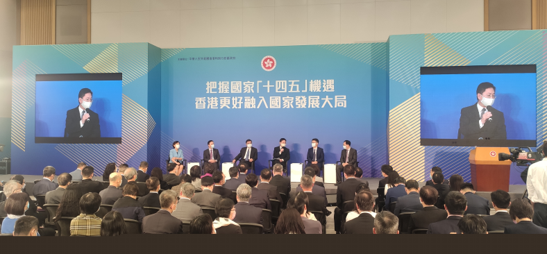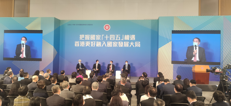 8月23日上午,香港首場「十四五」規劃綱要宣講會在香港特區政府總部舉行。宣講團成員與香港各界熱烈互動,氣氛活躍。