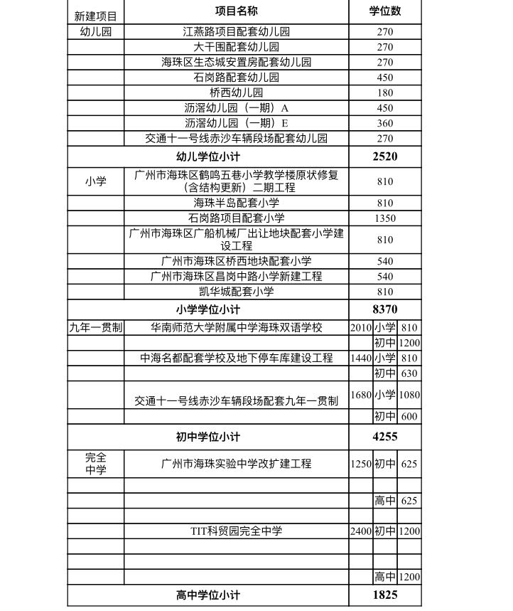 海珠区“十四五”规划期间新建学校、幼儿园规划及新增学位情况