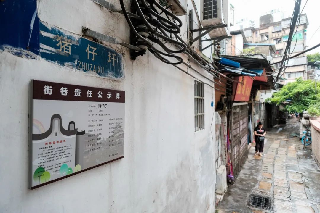 说起“猪仔圩”,还要从“带河路”说起。据了解,猪仔圩曾是带河路的组成部分,带河路南起长寿西路,北至龙津中路,因带河涌得名。1921年,广州拆城建马路,带河涌被填埋,路面铺上沥青。由于开建马路时沿线部分建筑不能拆除,因此短短600米的马路上有9个折点,被称为广州“最曲折”的道路。资料显示,带河路由芦排里、都堂街、龙翔里、带河涌边、晚景里、捷龙里、猪仔圩、兴龙里、河溪涌边街、成金里、源胜西街组成。1996年,为了打通这条南北向道路,带河路并入康王路,猪仔圩北侧变成新的电梯小区,如今仅剩部分区域。