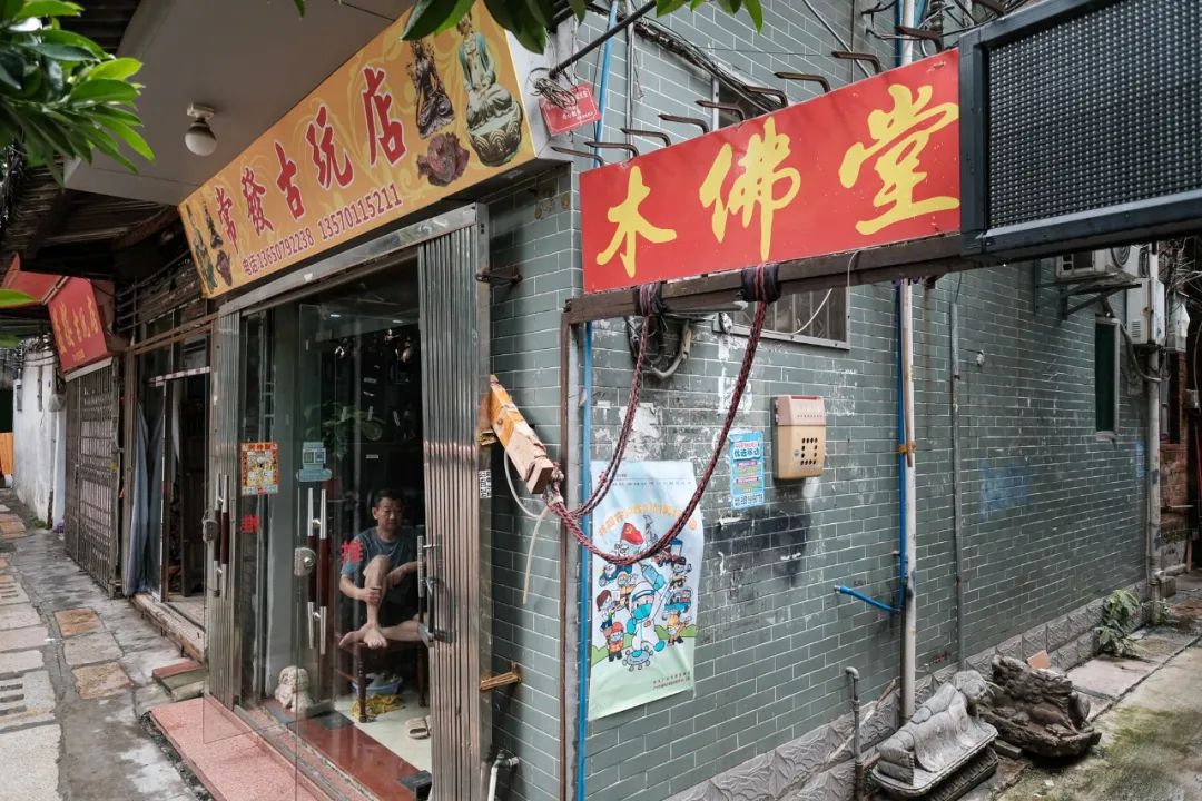 如今的猪仔圩,是一条几十米长的小巷,周边依旧保留着一些传统的古玩店。小小的巷子里,每天聚集着不少前来摆摊销售古玩的小贩们。地摊上的货品种类繁多,有旧钱币、旧瓷器、旧相片、旧字画、旧摆件、旧玉器等等,摊主们将这些“宝贝”整齐分类摆放好,等着买主前来收购。