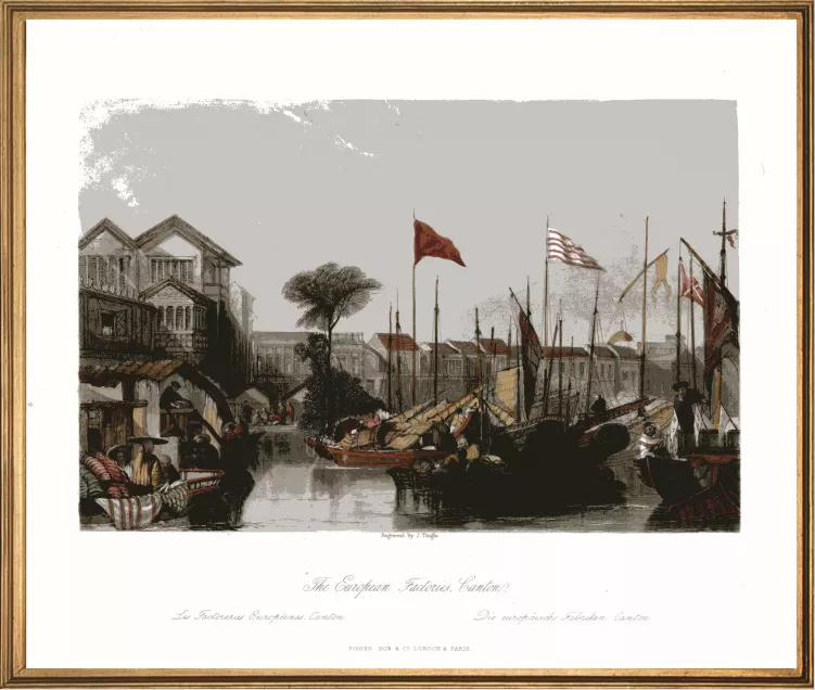 该展览还展出8张铜版画。从这些来自西方的画面当中,我们可以一窥19世纪广州作为世界贸易港口的城市风貌。