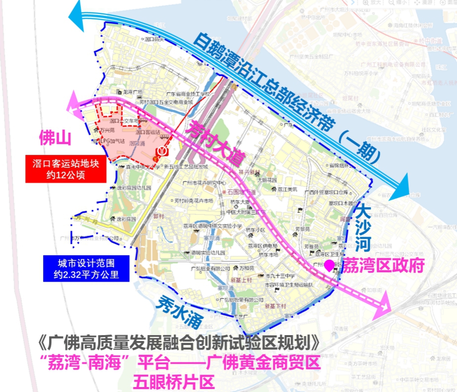 地块位于《广佛高质量发展融合创新试验区规划》“荔湾-南海”试验区的连片开发范围内,属于重点整备区,并且涉及荔湾区城中村改造三年计划中的五眼桥村。基于成片连片开发原则,推进广州市高质量发展,统筹城市更新相关工作,本次控制性规划修改范围结合五眼桥片区范围考虑。