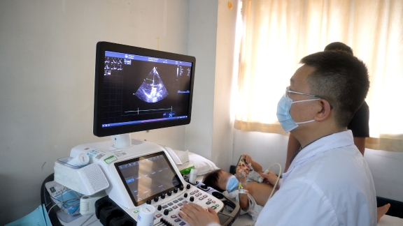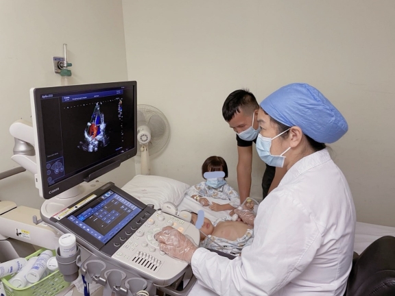 潘微教授为姐妹二人复查超声心动图