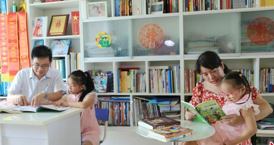 吕玉芬说,在书香家庭的营造上,除了硬件的营造,让书籍触手可及,更重要的是亲子阅读引导。每天晚上睡觉前,一家人就会一起看书,一起分享阅读心得,让心静下来。同时,在购买书籍时,选购超年龄书籍,放在书架上,但不要求孩子去读,当她们想读时随手可读,也能很快理解。此外,要尊重孩子的选择,选择她们喜欢的书籍。
