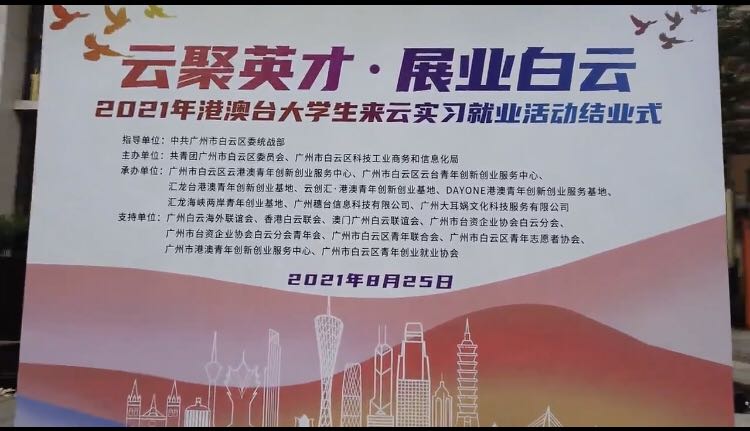 近日,由廣州市白雲區委統戰部指導,團白雲區委、白雲區科工商信局主辦,「雲聚英才•展業白雲」2021年港澳台大學生來雲實習就業活動結營式在Dayone港澳青年創新創業服務基地舉行,22名港澳台大學生結束了1個半月的職場生活,齊聚一堂交流各自實習的感想感受。
