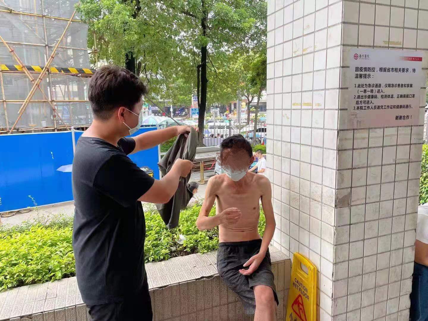 日前,广州市白云区流动救助服务小分队在进行日常街面巡查过程中,在京溪南方医院西门外发现一名上身赤裸的男性流浪人员,经体温检测发现其具有发热症状,遂立即按照广州市救助管理领域疫情防控工作要求,会同京溪街道将人员送往京溪南方医院进行核酸检测。