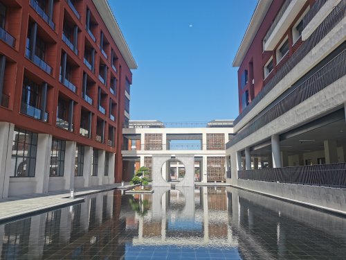 学校配备了国内一流的教育教学场所。据该校相关负责人介绍,学校拥有图书馆、博物馆、科技馆等多种功能空间,校园综合体育馆以国家级比赛标准打造,具备举办全国中学生运动会的水准。值得注意的是,学校的艺术中心不仅设剧院、音乐厅,也有着可供社区使用的文化设施。校园设计颇具人性化,风雨廊串联校区各处,校园中教学、生活、运动三区形成“品”字型空间,让师生学习生活高效便捷,基本可做到10分钟来回。