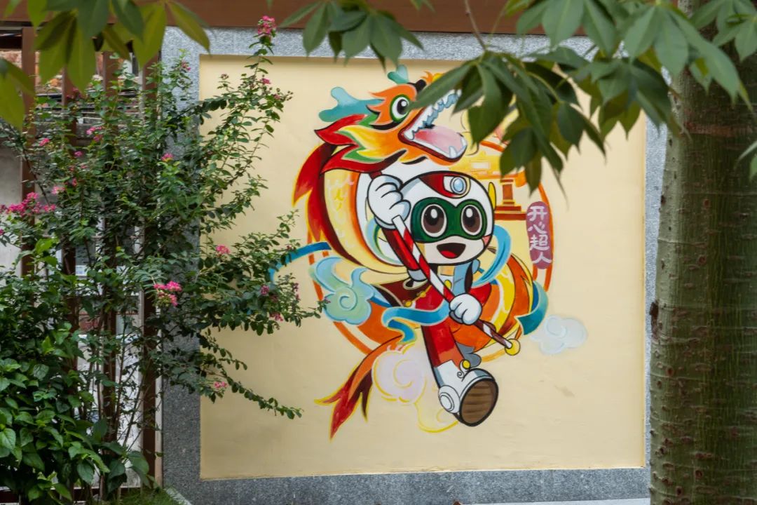 不仅如此,金花街道还发动辖内明星动漫公司打造了开心超人联盟手绘墙,以同样的守护主题,联系古今,营造出浓郁的社区文化氛围。