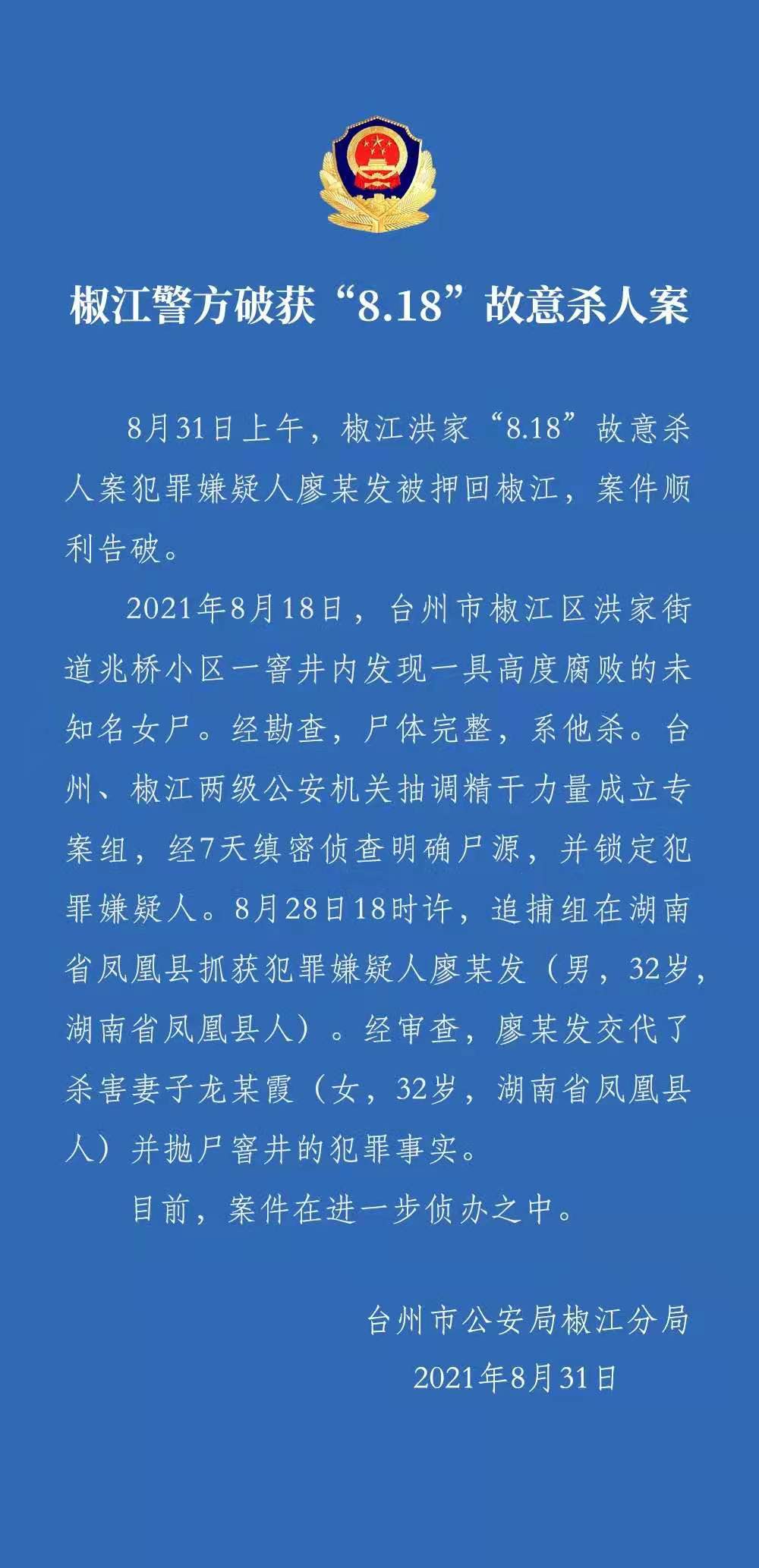 刚刚通报!浙江台州椒江“无名女尸案”告破