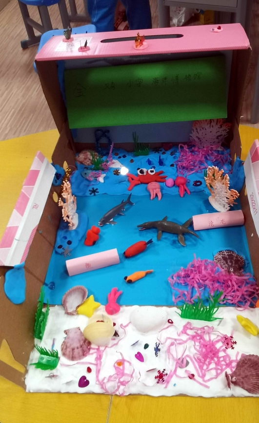 在搭建过程中,孩子们还遇到许许多多的小问题:如何挑选出符合展览主题的展品?没有现成的展品,橡皮泥、纸黏土、硬壳纸等常见材料如何巧妙组合?孩子们根据自己的想法、去天马行空,想出比困难多的办法去解决它。