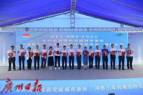 8月31日,“学党史 做铁军”系列活动之长岭街道提前完成城市更新“决胜三年完成旧村拆迁攻坚任务”总结大会上午在长岭街道元贝社举行,当天,随着最后一栋大楼轰然倒下,长岭街道列入三年计划的6个城市更新项目总体拆除率已达99%各个项目拆除率均已超过99%,成为黄埔区第一个完成城市更新决胜三年完成拆除任务的街镇。