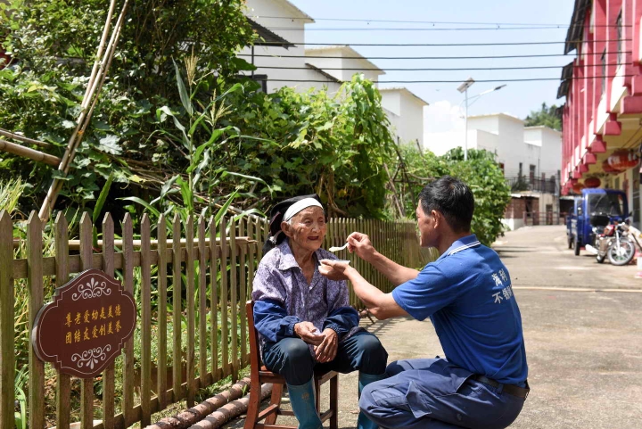 时间一转便到了1983年。“为改善居住条件,我建了三间泥砖房,当时算是好房子,不再担心透风漏雨,住得安心一点。”赵志财笑着说。接着,村民陆续建起泥砖房,逐步改善居住条件。2011年,在省军区的帮扶和乳源县委、县政府的支持下,全村拆旧建新,在当年的11月16日,80多户瑶族同胞,欢天喜地搬入新居,每户住上140多平方米的楼房。为了铭记军民鱼水深情,村民在村口竖立了一块“八一瑶族新村”的碑刻。