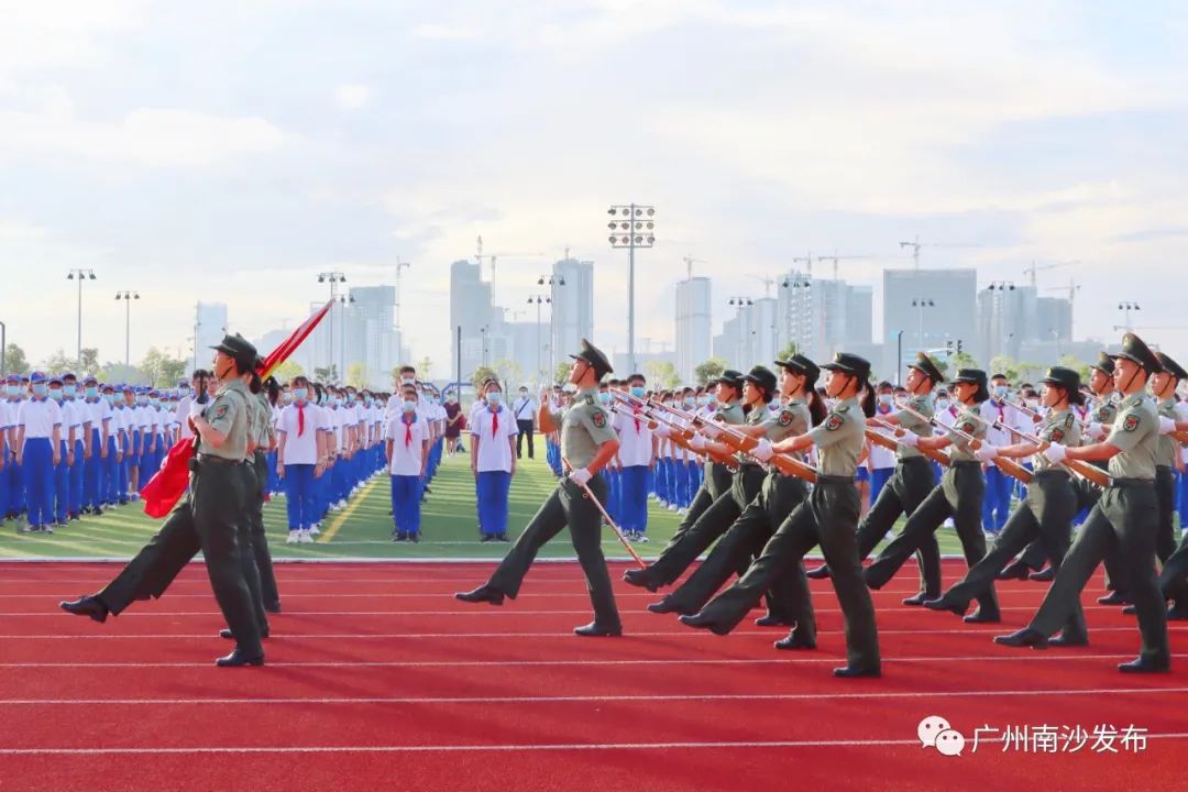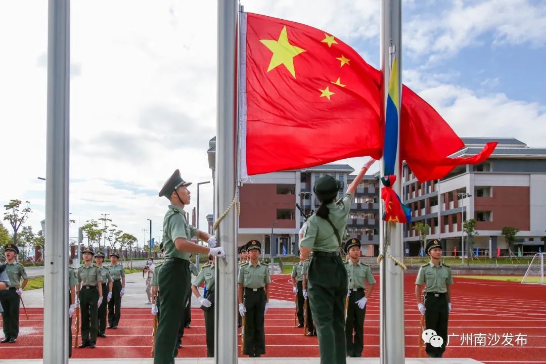 今天上午,广州市南沙区滨海实验学校在学校操场举行了2021年秋季新学期开学典礼,伴随着雄壮的国歌声,五星红旗冉冉升起,拉开了典礼的序幕。