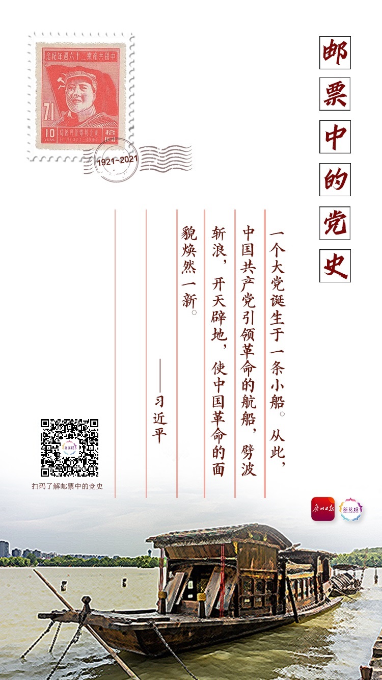 红邮寻踪,学史力行。从今天起,广州日报推出《邮票中的党史》融媒体报道,以珍贵邮票为线索,重温那些激情燃烧的岁月。