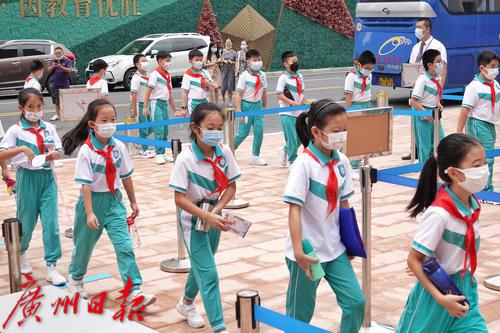 2021年9月1日上午,广州市天河区均和小学开学,同学们有序地进入校园。