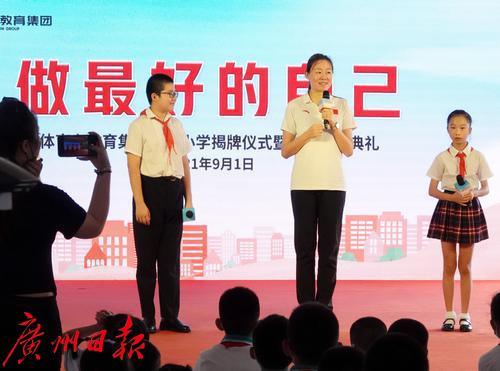 2021年9月1日上午,领导嘉宾为天河区体育东教育集团均和小学揭牌。